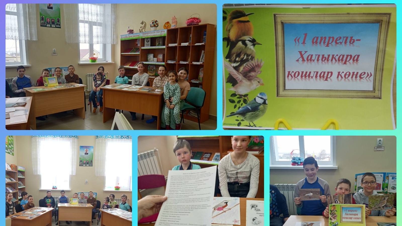 Халыкара кошлар көне уңаеннан Айдар авыл китапханәсендә язучы-натуралистлар китаплары буенча“Исәнмесез кошлар, безнең дуслар!” дип исемләнгән әдәби уен оештырылды. Очрашу барышында балалар кошлар турында бик күп кызыклы мәгълүмат, аларның җылы яктан кайтуына әзерлек турында белделәр. В. Бианки, Г.Скребицкий, Н.Сладков, Е.Чарушин, К.Паустовскийның кошлар турында язылган әсәрләрен кычкырып укыдылар, бик күп кызыклы биремнәр үтәделәр, конкурсларда катнаштылар. Балаларга җирдәге барлык җан ияләре кебек үк, кошларның да кеше ярдәменә мохтаҗ булулары, табигатькә һәм бөтен тереклеккә сакчыл карарга кирәклеге җиткерелде. Чара “Язны сәламли кошлар” дигән китап күргәзмәсенә күзәтү белән тәмамланды.