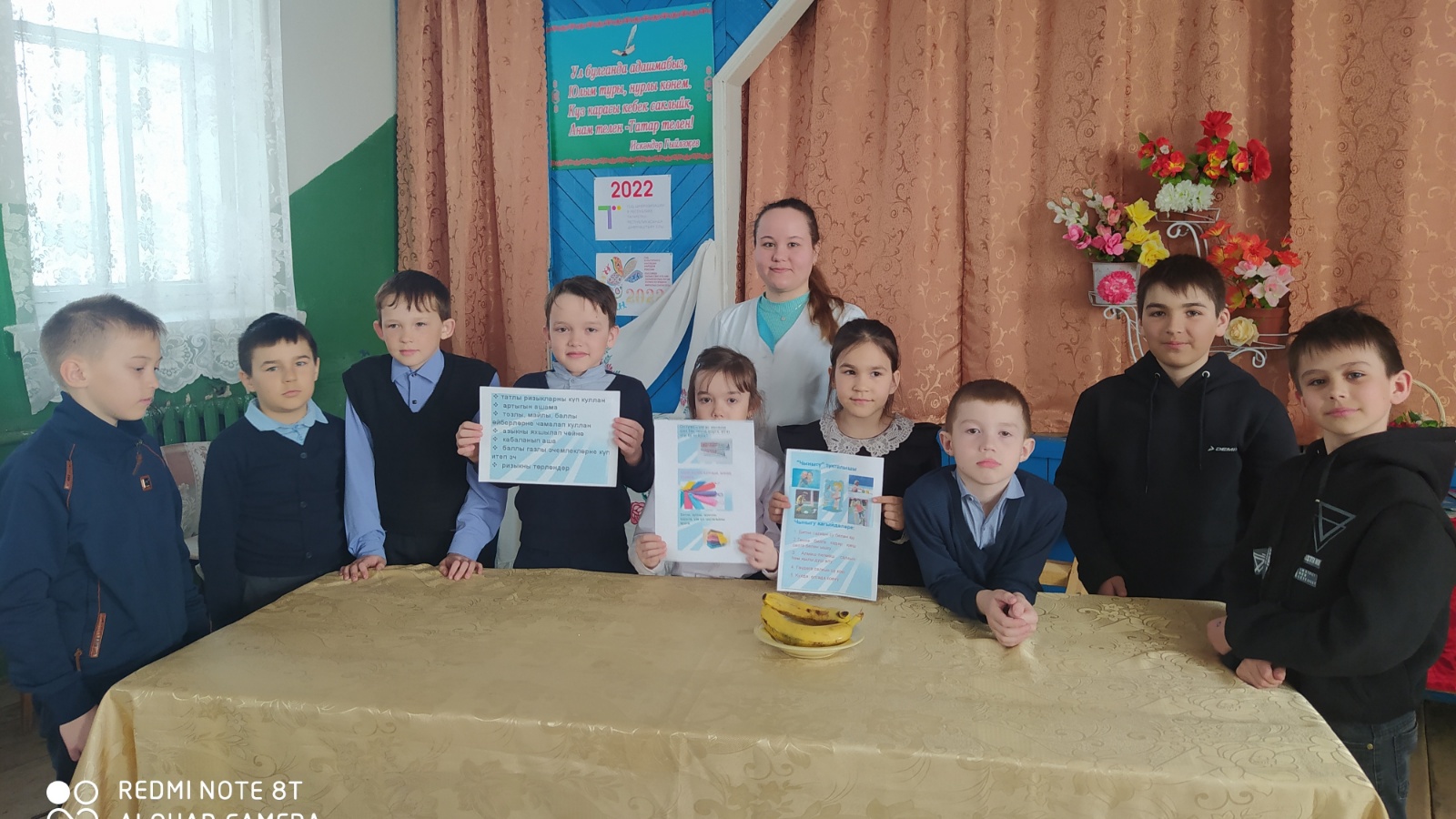 Балаларда сәламәт тормыш рәвеше,физик күнегүләр,дөрес туклану,көндәлек режимны,гигиена кагыйдәләрен үтәү белән сәламәтлекнең ныклы бәйләнештә булуын аңлату максатыннан,7 апрель көнне Балыклы авылы мәдәният йортында,фельдшер Билалова Миләүшә белән берлектә "Сәламәтлек иленә сәяхәт"дип исемләнгән интеллектуаль уен үткәрелде.