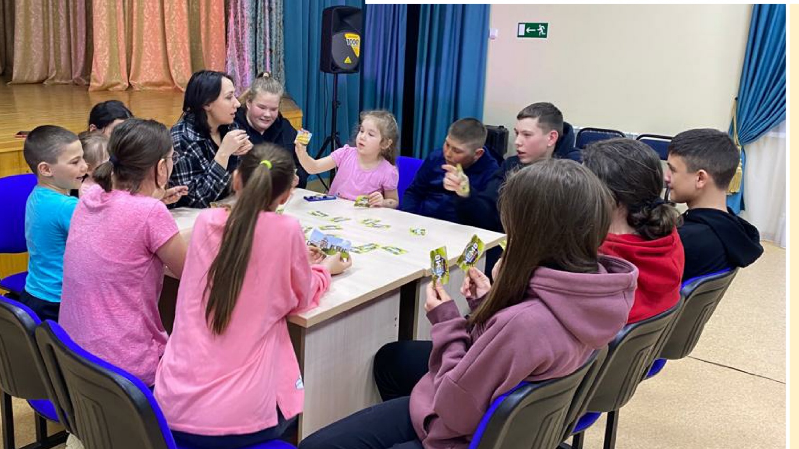 9 апрель көнне Үзәк мәдәният йортында "Балалар-шпионнар"дип исемләнгән интеллектуаль квест үткәрелде. Бу уен хәтерне үстерергә, күзаллауларны киңәйтергә, игътибарны үстерергә ярдәм итә. Мөмкин кадәр күбрәк пар карточкалар җыярга кирәк. Карточкалардагы рәсемнәр буенча планетабызның төрле почмакларындагы истәлекле урыннарның фотосурәтләре, аларны истә калдырырга һәм һәр истәлекле урын турында сөйләргә кирәк