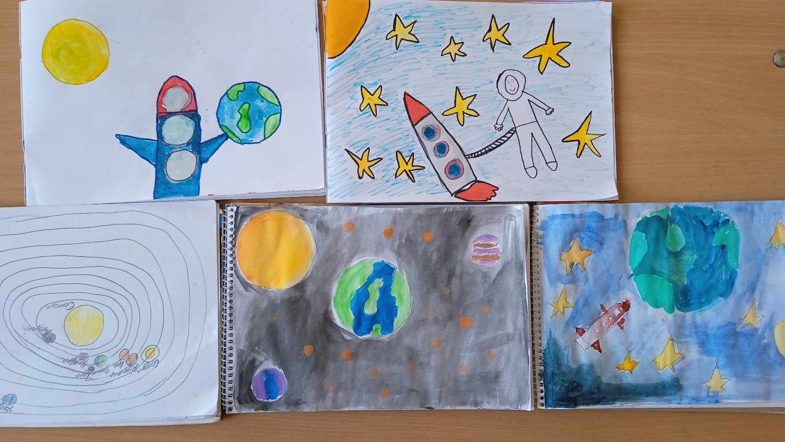 Шул уңайдан без балалар белән рәсем конкурсы игълан иттек. Космонавтика көненә һәм беренче очучы-космонавт, Советлар Союзы Герое Юрий Алексеевич Гагаринга багышланган рәсем конкурсы «Ерак дөньяларга ракеталар оча» дип аталды. Юрий Алексеевич – 1961 елның 12 апрелендә космик киңлеккә очкан тарихта беренче кеше. Конкурста башлангыч сыйныф укучылары катнашты. Һәр бала үзенең фантазиясен эшкә җигеп рәсем ясап килде. Бу безнең ел саен үткәрелеп килә торган чарабыз. Балалар бәйрәмне конкурсларны көтеп алалар һәм бик теләп катнашалар.