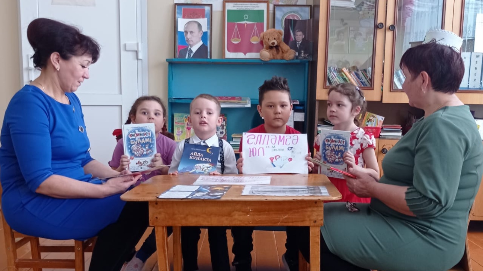 Шул уңайдан Югары Кибәхуҗа авыл китапханәчесе “Кояшкай” балалар бакчасында тәрбиячеләр белән берлектә космик бәйрәмгә карата “Галәмгә юл” дигән танып-белү сәгате үткәрде. Аның максаты - мәктәпкәчә яшьтәге балаларны космос белән таныштыру, балаларның космос планеталары турында күзаллауларын киңәйтү һәм безнең илнең беренче космонавты Юрий Гагарин белән таныштыру иде.