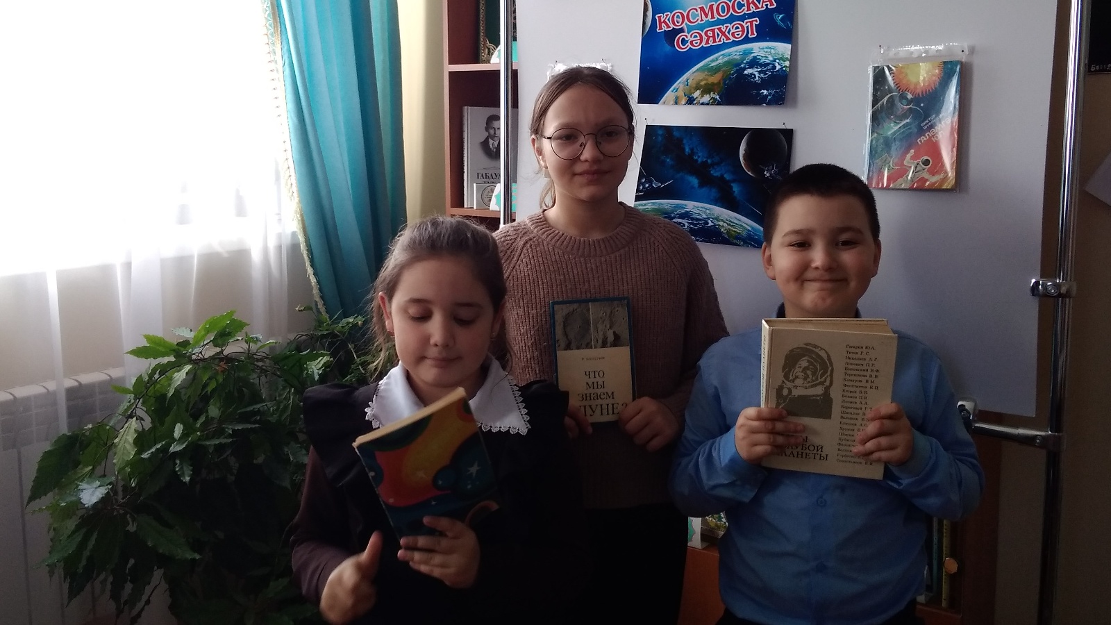 Китапханәче яшь катнашучыларга космос һәм беренче совет космонавтлары турында сөйләде һәм күргәзмә белән танышнырды. Балалар беренче "Восток-1" космик корабле, Юрий Алексеевич Гагаринның беренче тапкыр космоска очуы турында белделәр. Китапханәче балаларга Җирнең беренче иярчене турында сөйләнә торган кызыклы китапларны да күрсәтте. Катнашучылар “Космоска сәяхәт” дип исемләнгән викторинада катнаштылар.