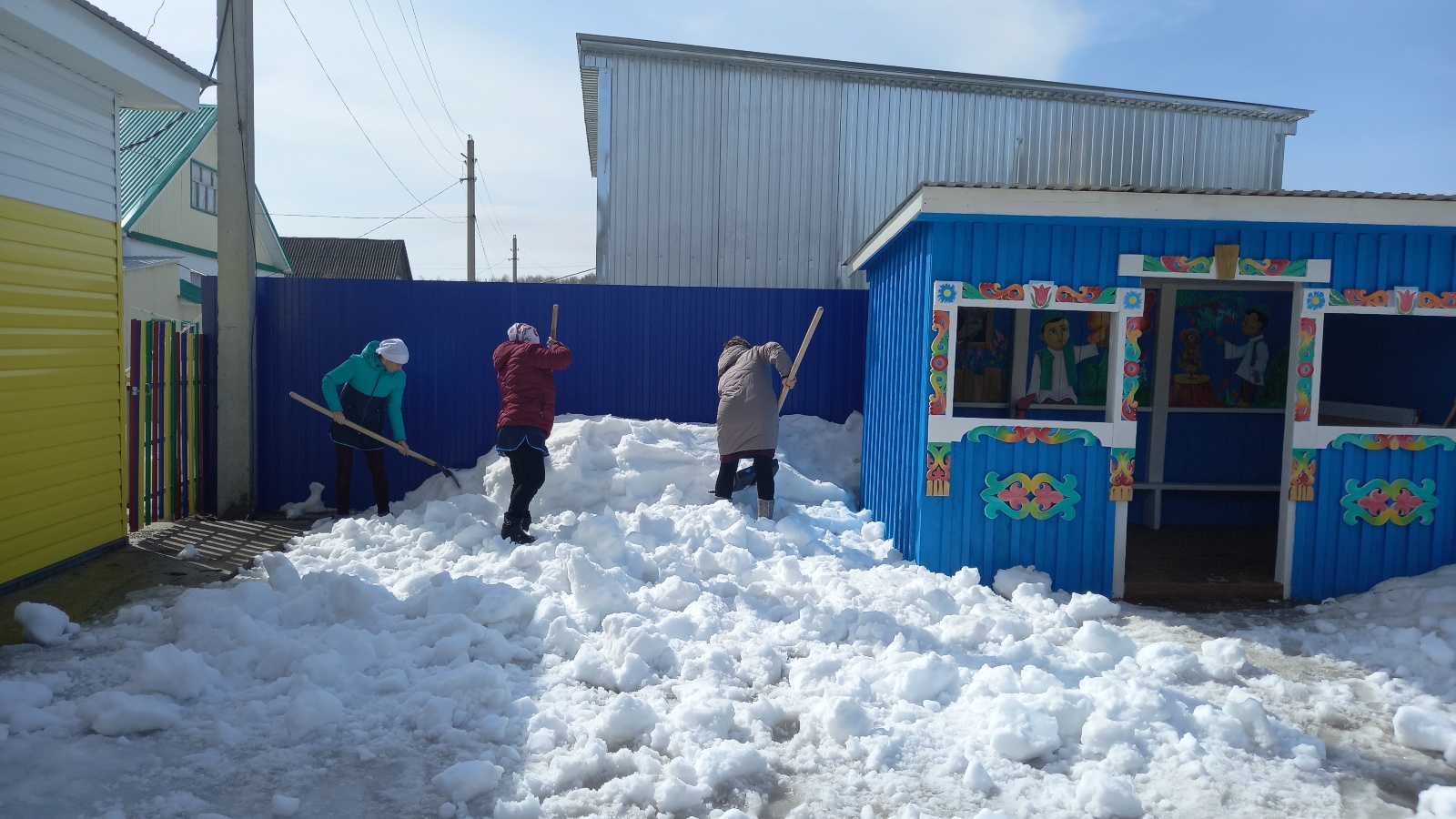 Без шимбә көнне коллектив белән өмәгә чыктык. Өмә- электән калган, кешеләрнең барысын бергә җыйган. Апрель ае чисталык таләп итә торган ай. Бөтен дөнья яшәрә, яшелләнә. Ләкин табигать уяну белән без дә игьтибарсыз калмаска тиеш. Кар астыннан чыккан чүпләрне җыештыру, карлар тарату безнең язгы иң мөһим эшләрдән санала. Бакча тирәсендә кипкән җирләрне себереп, чүпләрен түктек, бакчага кергәндәге агач араларын чистарттык, карлар тараттык.