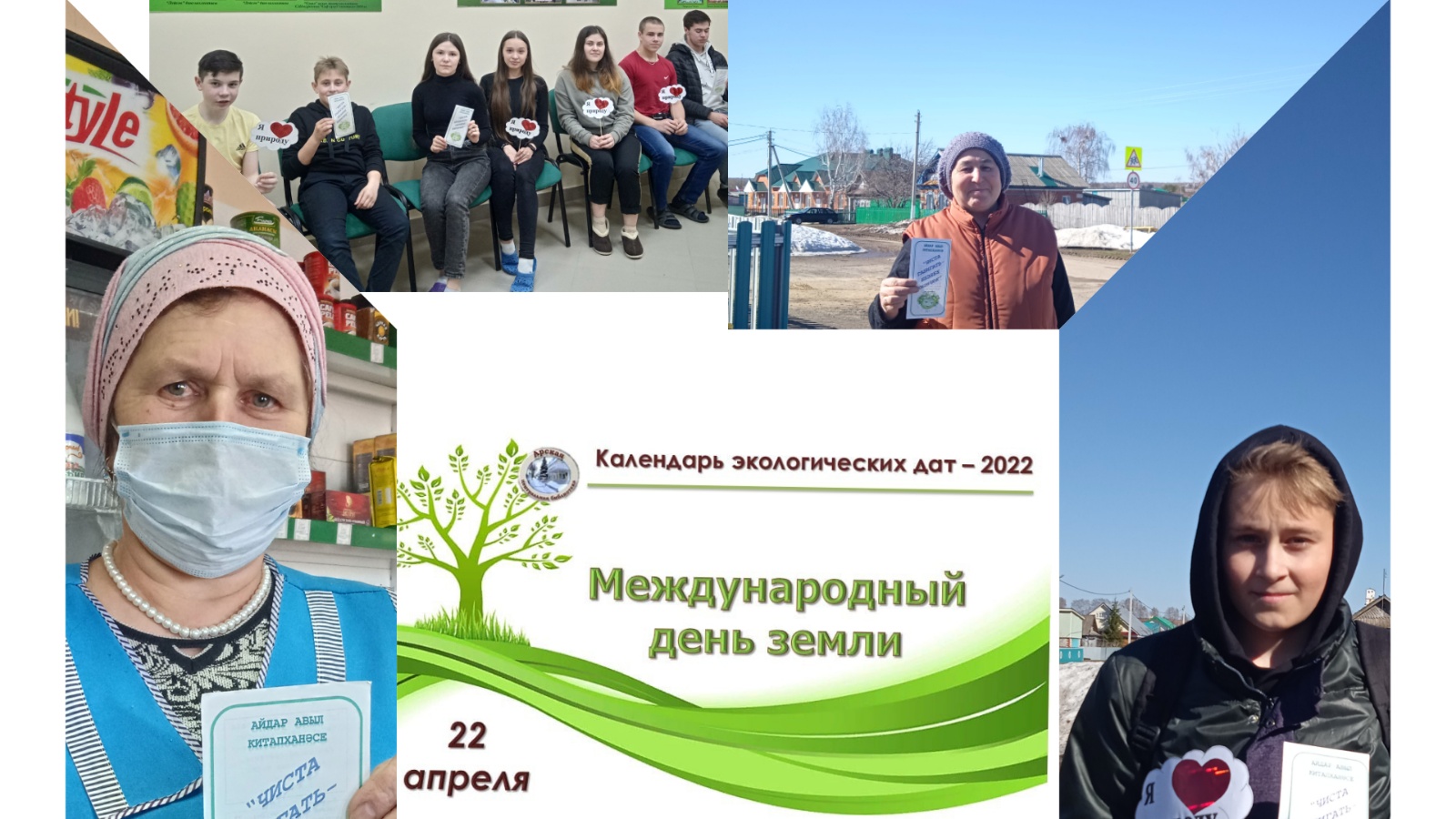 22 апрель-планетабызда Җир көне! Бу көн-безнең уртак йортыбыз-җирне чистарту,төзекләндерү буенча Бөтендөнья акцияләренең башлану көне. Бөтендөнья Җир көне уңаеннан Айдар авыл мәдәният йорты хезмәткәрләре, китапханә белән берлектә, яшьләр, авыл халкы өчен « Җирнең чисталыгы-безнең кулларда»дип исемләнгән буклет-белешмәлек әзерләделәр, авыл халкына аңлату эшләрен алып бардылар. Авылны һәм урамнарны чиста тотарга,ямьләндерергә кирәклеген искәрттеләр.