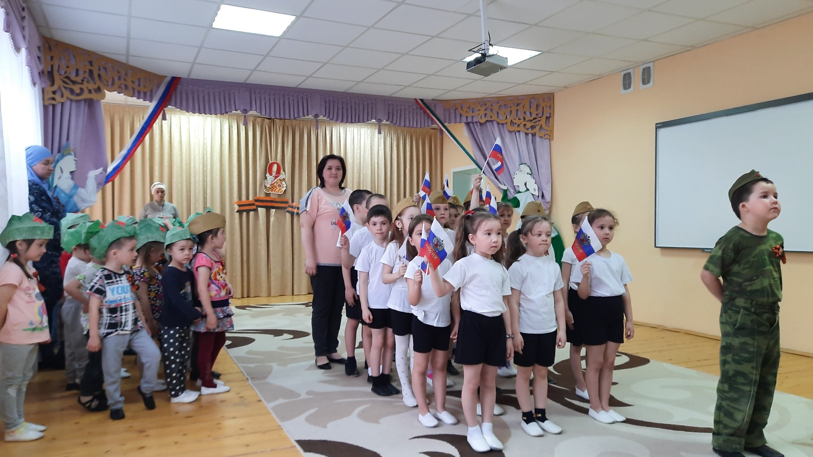 Бөек Ватан сугышында Җиңүнең 77 еллыгы алдыннан безнең Теләче 2нче балалар бакчасында өлкән төркемнәрдә тәрбияләнүчеләр арасында җыр һәм строй конкурсы булып узды. Яшь буында Ватанны яратуга патриотик хисләр тәрбияләү, хәрби җырлар белән танышу максатыннан оештырылган бу чарада командаларның үз-үзләрен тотышы, стройга басулары, җырны күмәк башкару осталыгы, командирның командаларын үтәү исәпкә алынды.