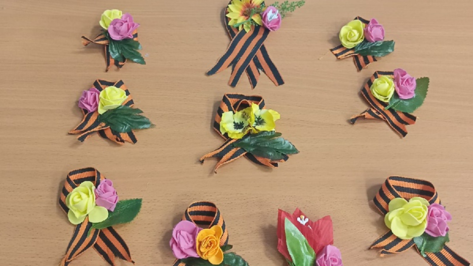 5 май көнне Шәтке авылы мәдәният хезмәткәрләре берләшмәләргә йөрүче балалар белән Георгий тасмасы белән брошкалар ясадылар.