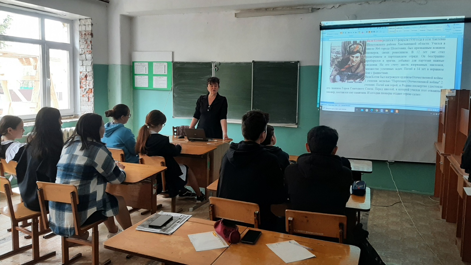 Чараның максаты: укучыларның Бөек Ватан сугышы вакыйгалары турында белемнәрен киңәйтү; сугыш елларында балаларның тормышы һәм батырлыгы турында сөйләү; Бөек Ватан сугышында һәлак булган каһарманнар истәлеген саклап калу. Чара барышында балалар үзләренең яшьтәшләренең батырлыкларын искә төшерделәр.