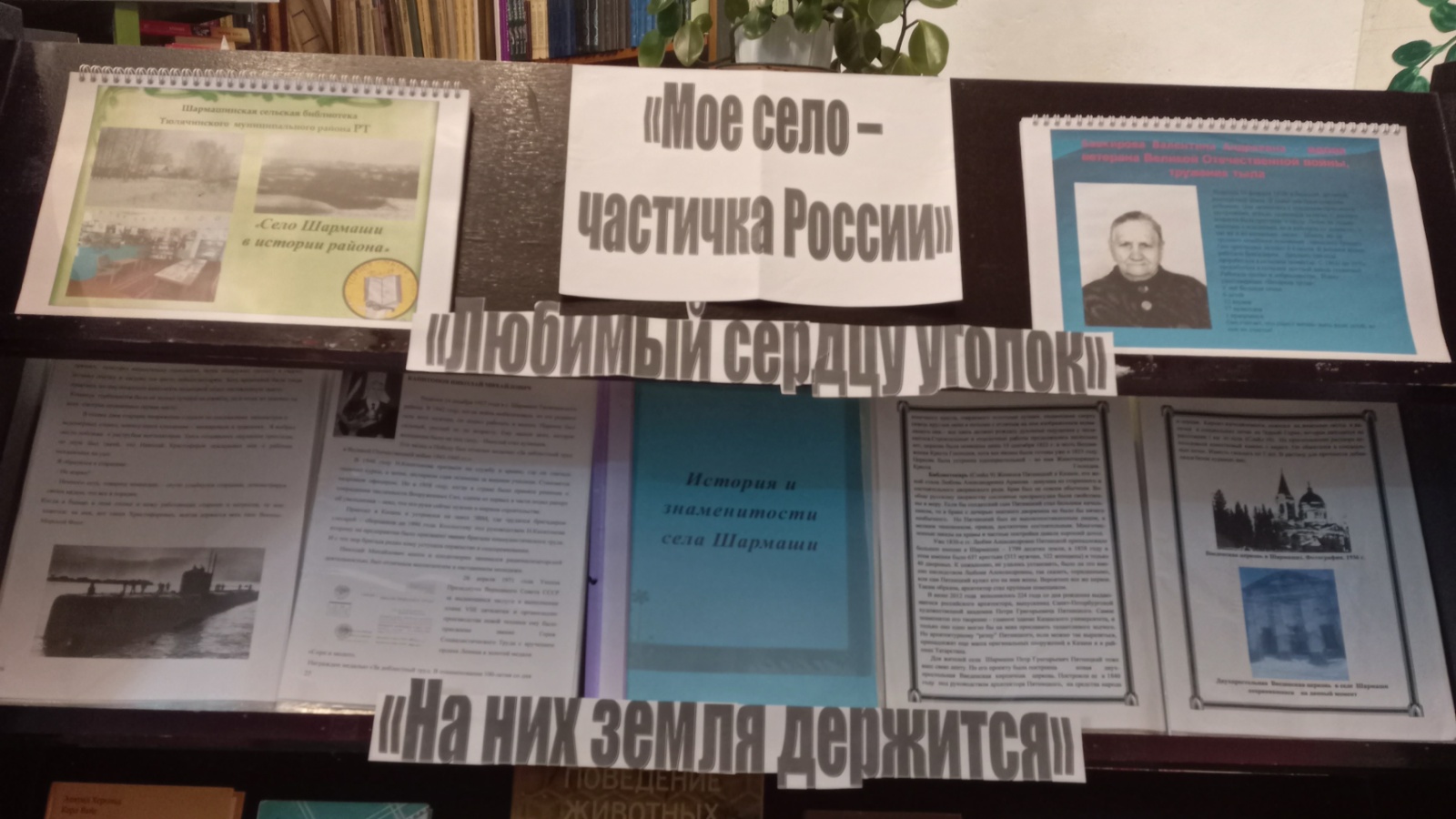 Шармыш авыл китапханәсендә үз төбәген, тарихын яратучы күпкырлы укучылар өчен 11 майда "Минем авыл - Россиянең бер өлеше" күргәзмәсе ачылды, ул Халык сәнгате һәм Россия халыкларының матди булмаган мәдәни мирасын саклау елына багышлана. Күргәзмә туган җиргә булган мәхәббәт хакында сөйли. Катнашучылар кече Ватаныбызның үткәнен белделәр, аның битләрендә каһарманлык һәм ата-бабаларыбызның көндәлек эше чагылдырылган әдәбият белән танышты.