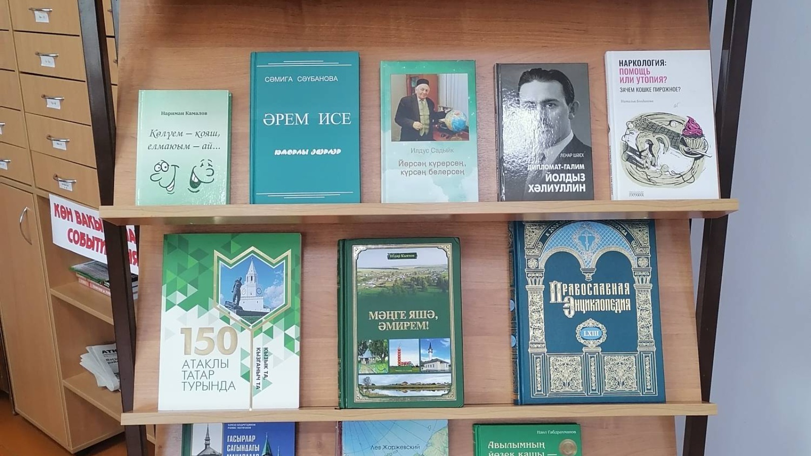 Китапханәнең уку залында яңа китаплардан торган “Яңа китаплар дөньясында” дип исемләнгән күргәзмә эшли.