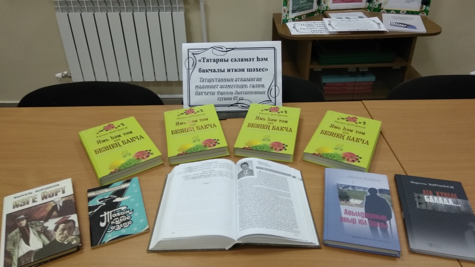 2 июнь көнне Айдар авыл китапханәсендә язучы Фарсель Зыятдиновның тууына 85 ел тулу уңаеннан "Татарны сәламәт һәм бакчалы иткән шәхес" дип исемләнгән китап күргәзмәсе оештырылды һәм күзәтү ясалды. Күргәзмәдә аның тормышы һәм эшчәнлеге турында кызыклы фактлар, китапханә фондындагы китаплары урын алды. Шулай ук яшелчә, җиләк-җимеш культуралары үстерү буенча файдалы киңәшләр дә тәкъдим ителде. Фарсель Зыятдинов-язучы, профессор, бакчачы, Татарстан Республикасының атказанган мәдәният хезмәткәре, укытучы-галим, 26 китап авторы, А.Алиш исемендәге әдәби премия иясе, фән эшлеклесе. Ул үз халкын, аның тарихын, туган җирен, хөрмәтләп яшәде. Язучының шигырьләре, повестьлары, хикәяләре игелеккә өндиләр, табигатькә, туган җиргә мәхәббәт тәрбиялиләр.