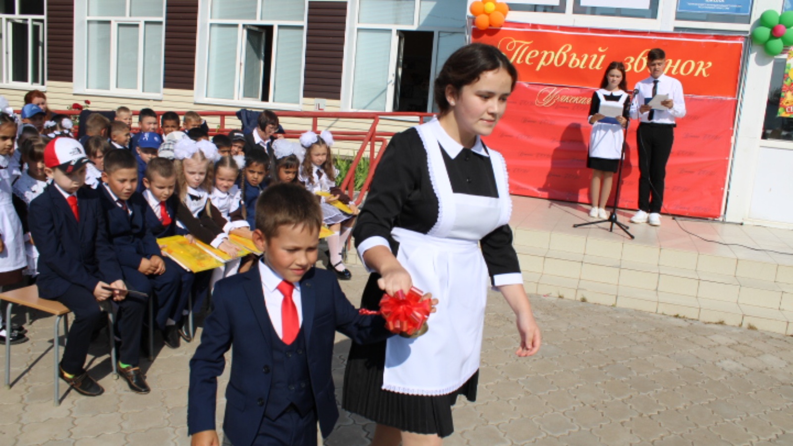 Барлык мәктәпләрдә дә Белем көненә багышланган бәйрәм чаралары узды! Бәйрәм Россия Федерациясе, Татарстан Республикасы, Теләче районы әләмнәрен күтәрүдән башланды. Укучыларны һәм педагогларны котлау өчен район хакимиятеннән, районның төрле учреждениеләре директорларыннан, авыл Советлары рәисләре һәм аларның секретарьлары, шулай ук МКУ «Мәгариф бүлеге» методистлары килгән иде. Укучылар барлык катнашучыларны җыр белән котладылар. Тантаналы чарадан соң сыйныф сәгатьләре үтте.