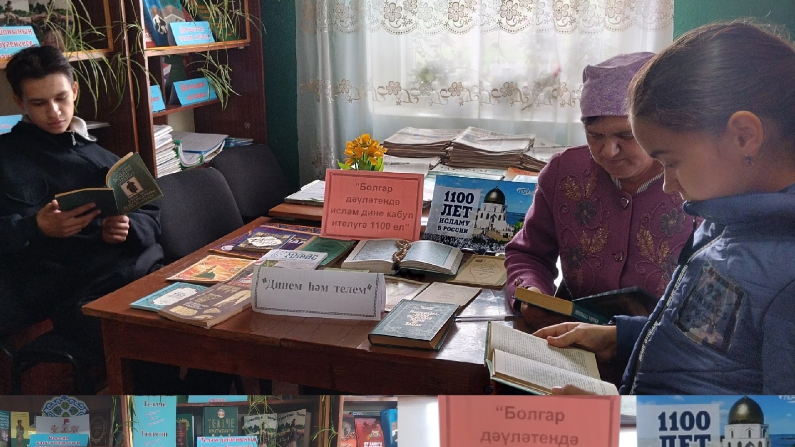 Шул уңайдан 7 сентябрь көнне Урта Мишә авыл китапханәсендә клуб белән берлектә “Динем һәм телем” исемле темага әңгәмә-сөйләшү үткәрелде. Ислам дине, Болгар ханлыгы, гомумән, борынгы бабаларыбызның тормыш-көнкүреше, яшәеше белән танышу өчен китаплардан күргәзмә куелды. Китап укучылар күргәзмәдә урын алган китаплар белән танышып, тарихи вакыйга турында киң мәгълүмат алдылар.