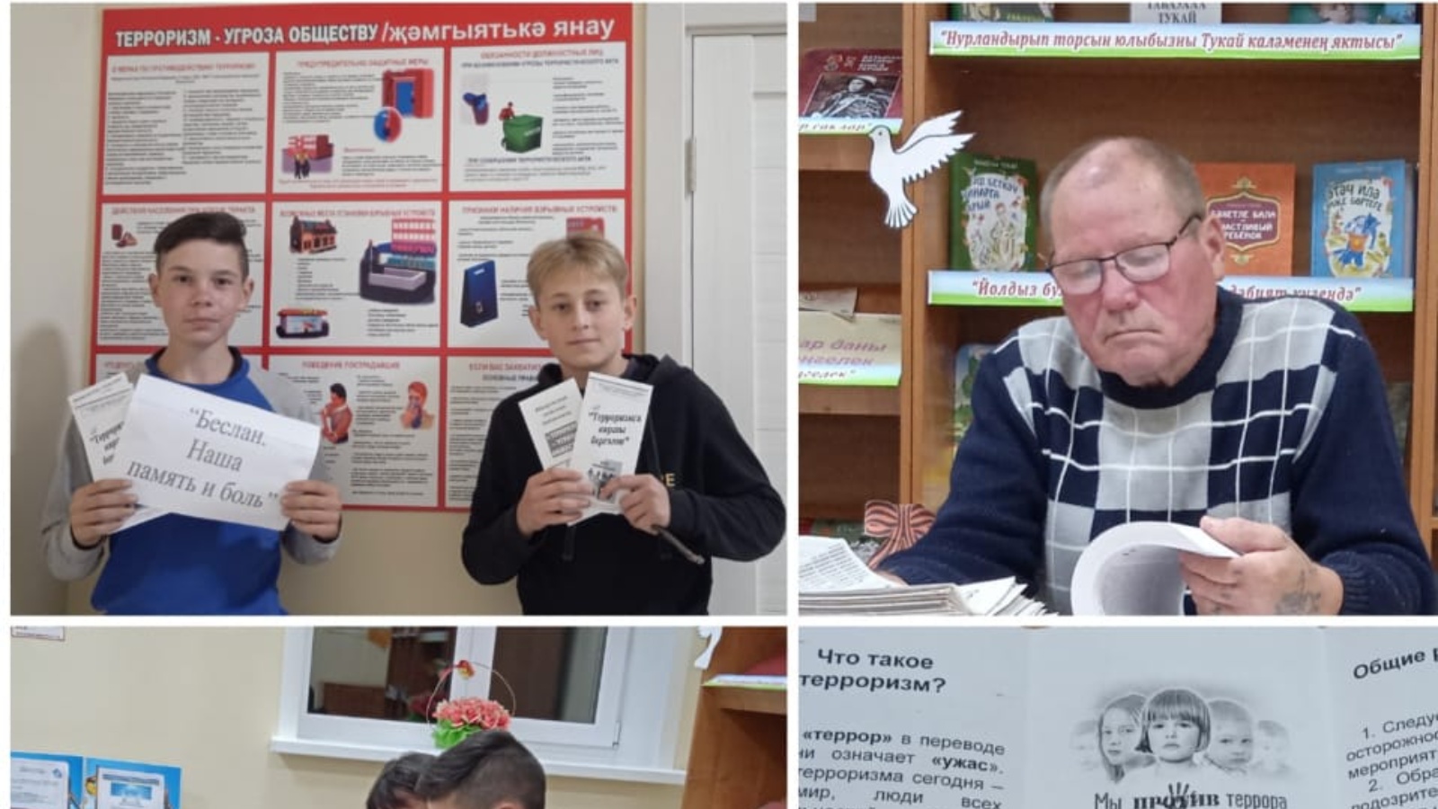 Бу дата - 2004 елның 1-3 сентябрендә булган хәзерге тарихның иң кайгылы битләренең берсе Беслан фаҗигасе белән тыгыз бәйләнгән. Бу көнне Айдар авылы китапханәсендә мәдәният йорты белән берлектә "Беслан. Безнең хәтер һәм газап" дип исемләнгән мәгълүмати очрашу үткәрелде. Әңгәмә барышында террорчылык акты янаган очракта үз-үзеңне тотуның төп кагыйдәләрен, гаепсезгә гомерләре өзелгән терроризм акты корбаннарын искә алынды. Укучылар терроризмның хәзерге заманның иң куркыныч һәм катлаулы күренешләре булуын белделәр. Ахырда барлык катнашучылар «Террорга каршы бергәләп» буклетлары алдылар. Беслан вакыйгалары кабатланмасын иде, бер-беребезгә карата игътибарлы булып, төрле милләт вәкилләрен хөрмәт итеп, дус-тату яшик!