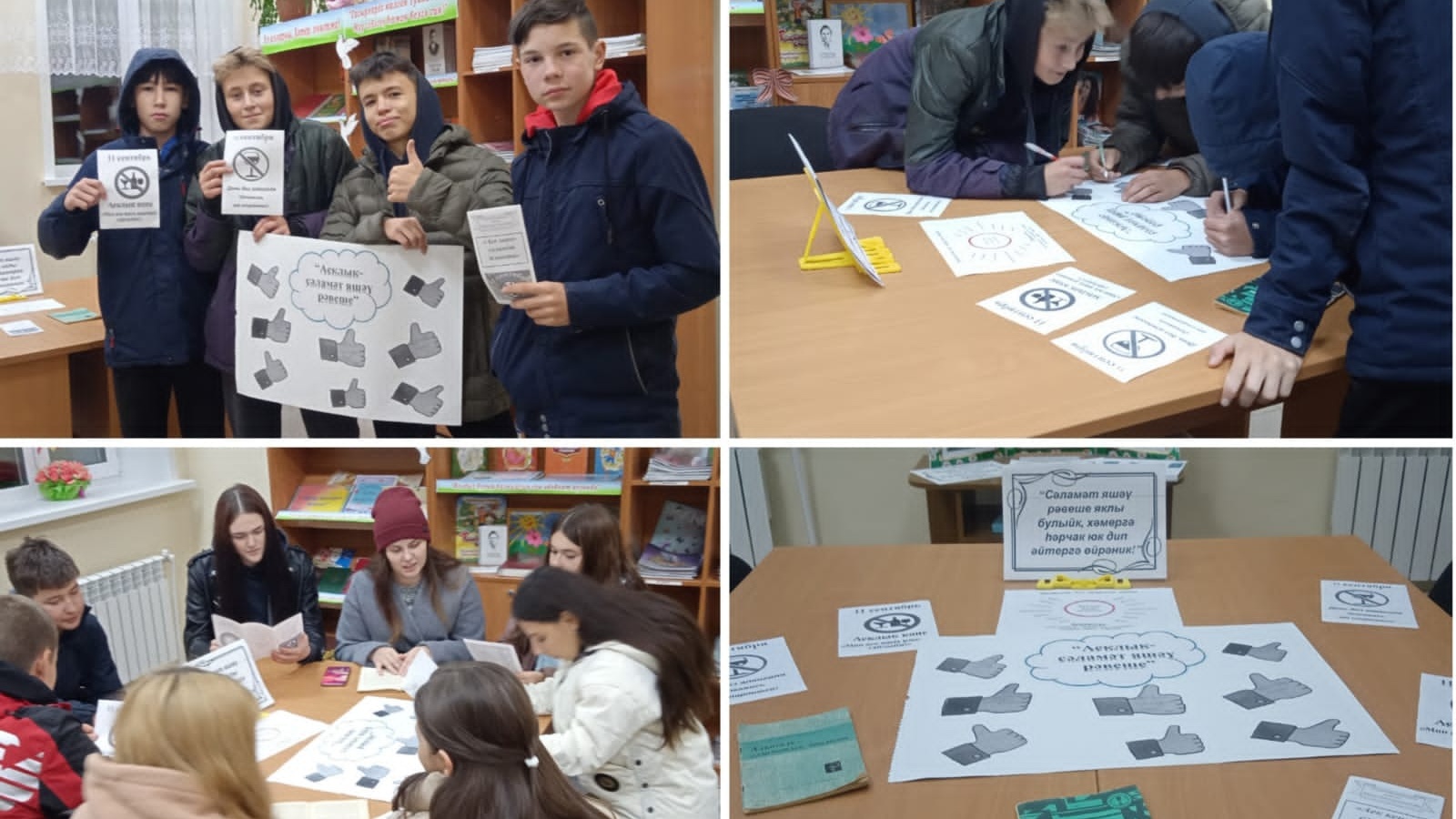 Чараның максаты -алкоголизм чиренең фаҗигасен аңлату, яшьләрне бу һәлакәткә китерүче гадәттән кисәтү, сәламәт яшәү рәвешен таныту. Әңгәмә барышында укучыларга, бу көннең барлыкка килү тарихы турында сөйләнелде. «Сәламәт яшәү рәвеше яклы булыйк, хәмергә һәрчак юк дип әйтергә өйрәник!” исемле китап күргәзмәсенә күзәтү ясалды, "Аеклык сәламәт яшәү рәвеше" исеме астында плакат эшләнде.”Аек кеше сәламәт планета”, “Откажись от спиртного!», «Аек булу-яшәү мәгънәсе» кебек буклетлар һәм белешмәлекләр таратылды.