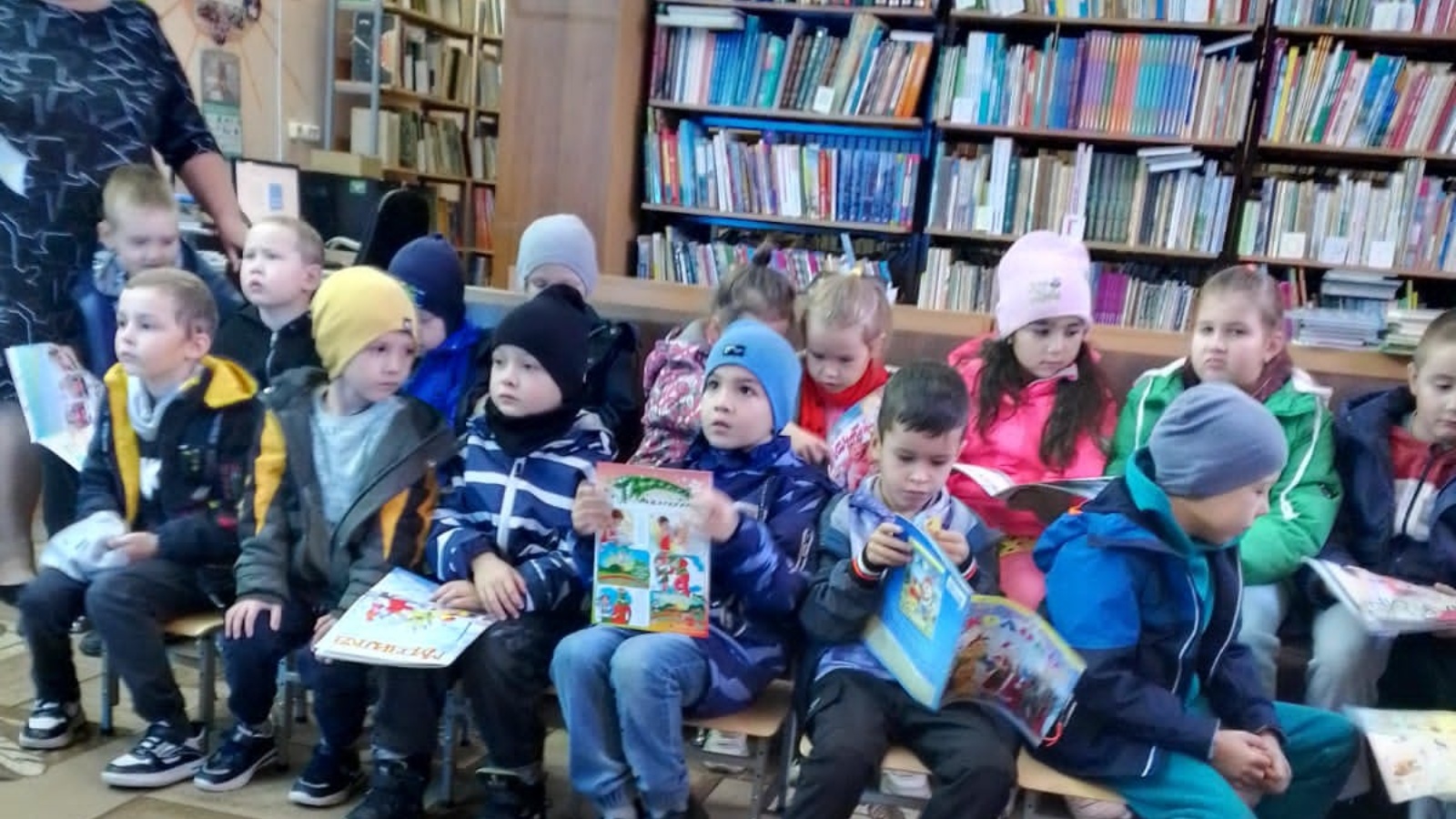 Балалар китапханәсендә яшь укучыларны китапханәчеләр Закирова Л.М., Фатыйхова Е. Г. каршы алды. Балаларны китапларының күптөрлелеге, китапханәгә язылу кагыйдәләре һәм китап белән эш итү кагыйдәләре белән таныштылар.