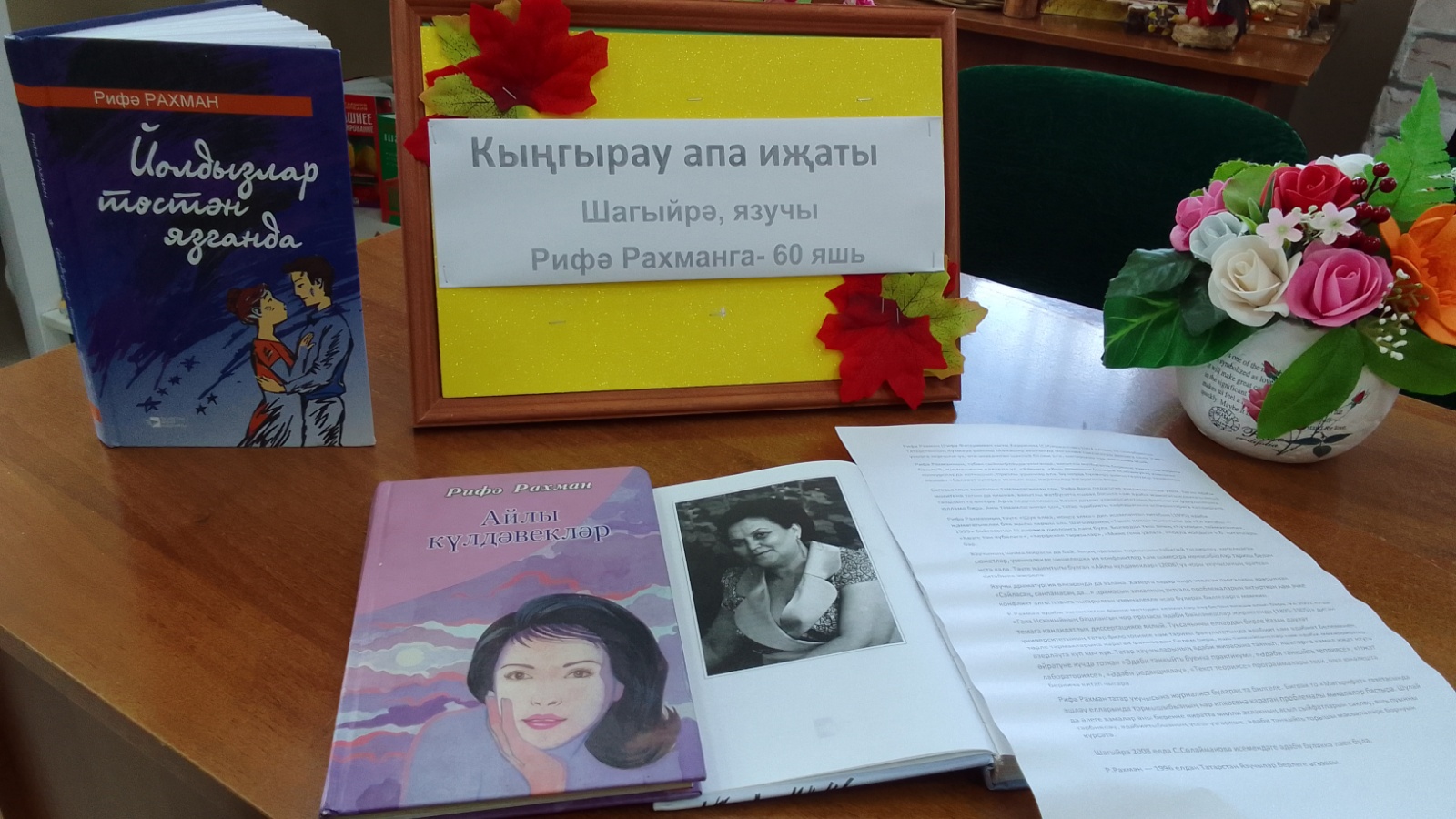 Сүз сәнгате остасы-шагыйрә, прозаик, драматург, публицист һәм галим — филолог Рифә Рахман 18 сентябрьдә үзенең 60 яшьлек юбилеен билгеләп үтә. Баландыш авыл китапханәсендә тулысынча Рифә Рахман иҗатына багышланган "Кыңгырау апа ижаты" дип исемләнгән китап күргәзмәсе оештырылды. Рифә Рахман- бөтен дөньяны нечкә тоя торган, татар халкы өчен җан атып йөрүче, аның мәдәнияте, әдәбияты һәм фәне чәчәк атуы өчен көрәшүче гаҗәеп тирән, күпкырлы шәхес.