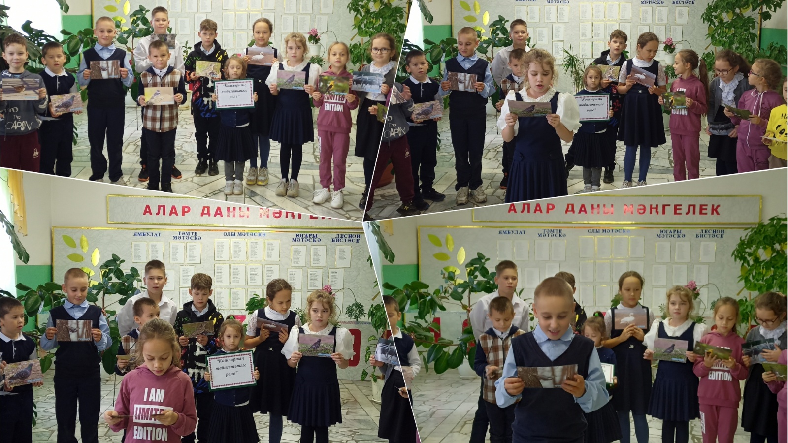 Укучыларның кошлар турында белемнәрен тирәнәйтү, аларның кеше тормышындагы ролен ачу, экологик әһәмиятен аңлату, укучыларыбызда канатлы дусларыбызга карата кайгыртучанлык тәрбияләү максатыннан оештырылган чарада башлангыч сыйныф укучылары катнаштылар. Мәдәният хезмәткәрләре аларга безнең якта яшәүче кошлар турында мәгълүмат бирделәр. Шулай ук кошлар турында табышмаклар әйтелде.