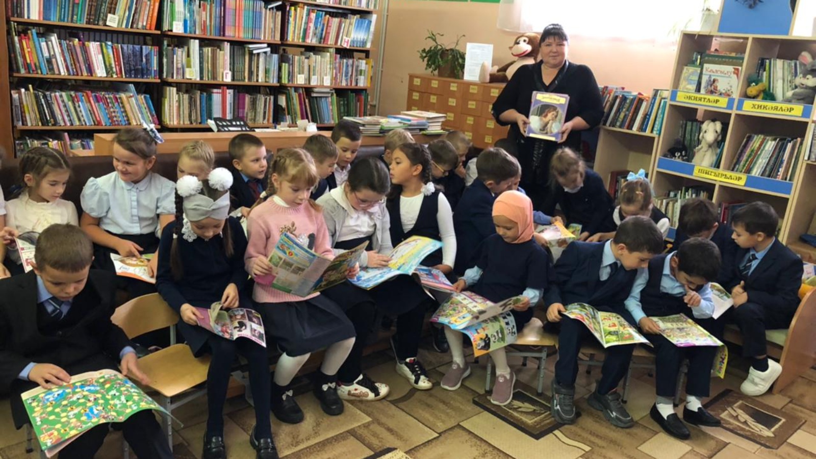Чара башында китапханәче балаларны китапханә һәм аның фондыннан файдалану кагыйдәләре белән таныштырды. Балалар район китапханәсендә нинди басмалар барлыгын, аларны ничек кулланырга һәм башка бик күп нәрсәләр турында белделәр. Аннары әдәби викторина сорауларына җавап бирделәр. Ахырда, укучылар кызыклы мультфильм карадылар һәм әти-әниләре белән өйдә укырга үзләренә ошаган китапларын сайлап алдылар.