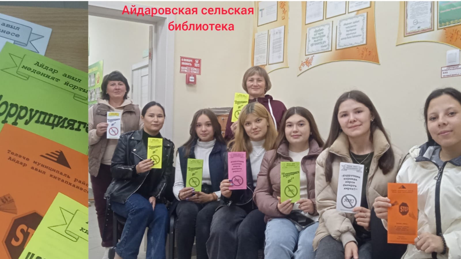 Яшүсмерләрдә коррупциягә каршы дөньяви карашны пропагандалау һәм формалаштыру, хокукый аңны үстерү максатыннан 24 сентябрьдә Айдар авылы китапханәсендә «Коррупция турында нәрсә белергә кирәк?» дигән темага әңгәмә үткәрелде һәм буклетлар тәкъдим ителде. Китапханәче коррупциянең төшенчәсе, аның төрләре турында сөйләде. Әлеге әңгәмә барышында коррупциянең нинди начар нәтиҗәләргә китерүе турында сүз алып барылды. Китапханәләр үткәргән коррупциягә каршы агарту эшләре халык арасында, шул исәптән яшьләр арасында хокукый аңның үсүен тәэмин итәчәк