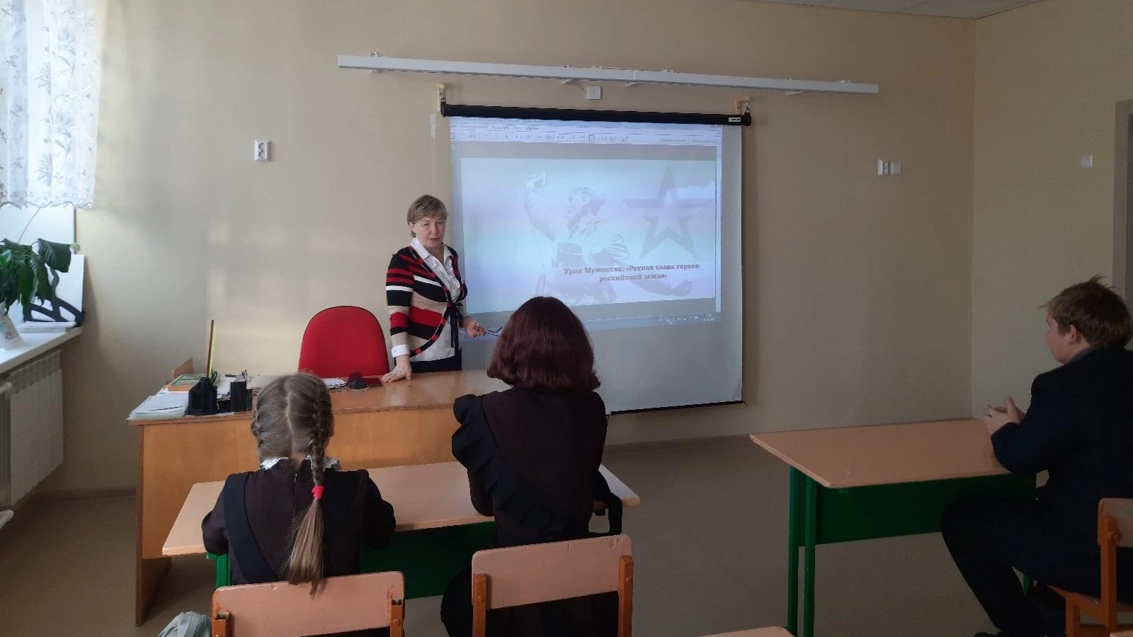 Әңгәмә барышында балалар тыныч тормышта батырлык мисалларын китерделәр, Бөек Ватан сугышы елларында һәм Украинада булган совет сугышчыларының фидакарьлеге турында искә алдылар. Россия Геройлары Дамир Исламов һәм Дамир Галимханов турында фильм карадылар, Башлангыч сыйныф укучылары хәрби операциядә катнашкан солдатларга матур хатлар яздылар.