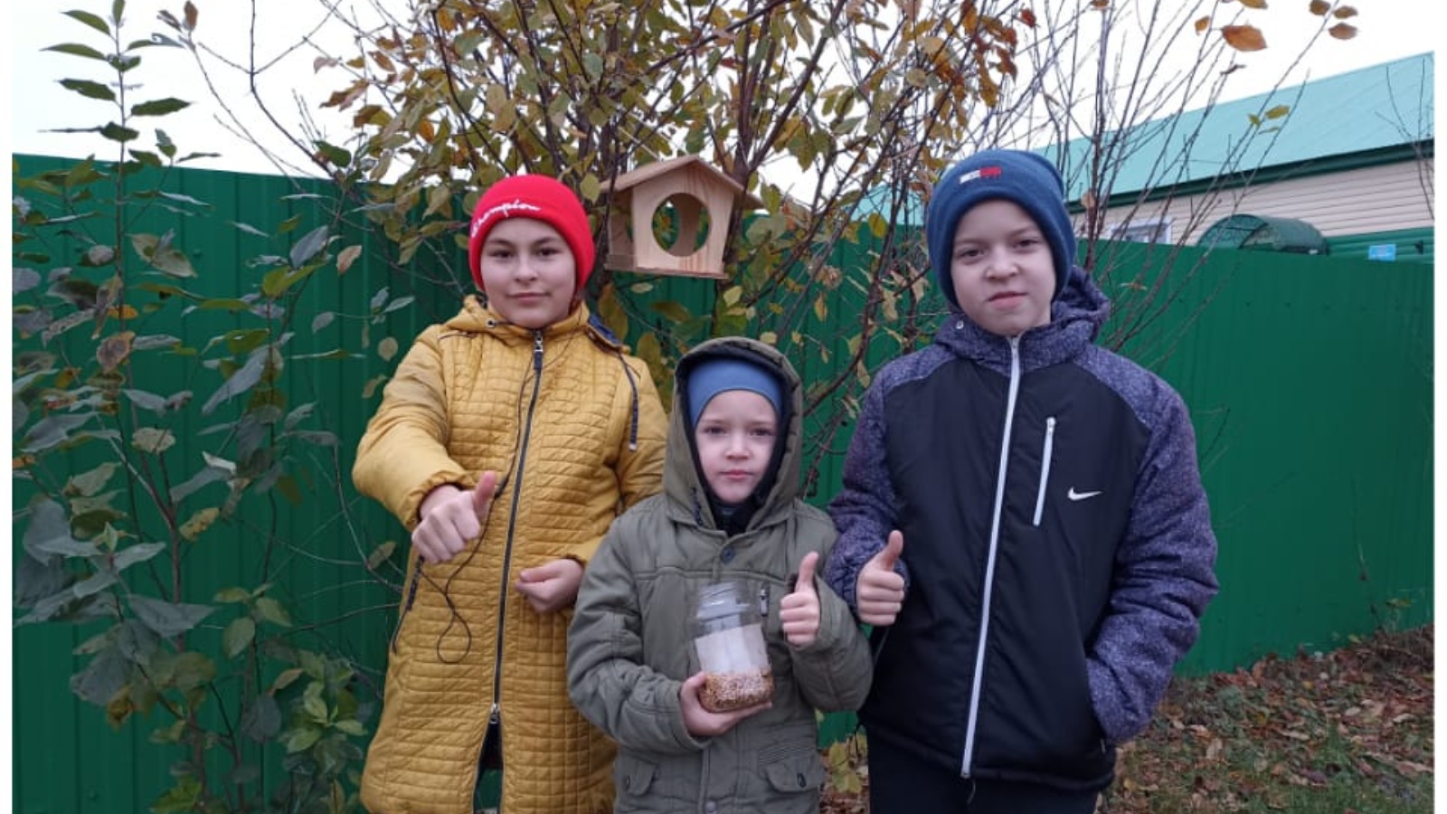 22 октябрь көнне дә алар җимлекләр ясап, мәдәният йорты янындагы агачларга элеп куйдылар. Балалар һәр көнне җимлекләргә көнбагыш, кабак орлыклары, ипи валчыклары сала.