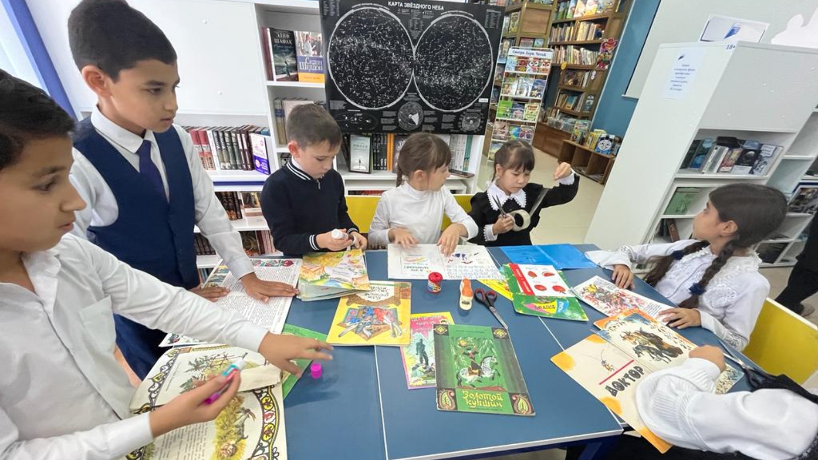 Балалар китап белән файдалану кагыйдәләрен искә төшерделәр. Аннары китапханәчеләр белән бергә балалар әдәбияты фондын яңадан карап чыктылар һәм ярдәмгә мохтаҗ булган «авыру китаплар»ны ачыкладылар, чөнки вакыт узу белән китапларда битләр бер-бер артлы таркала һәм югала башлый. Балалар күп кенә китапларның ертылган битләрен, тышлыкларын тәртипкә китерделәр һәм үз тәҗрибәләре белән китап төзүгә күпме хезмәт куелуын һәм аның белән ничек мөгамәлә итәргә кирәклеген белделәр.
