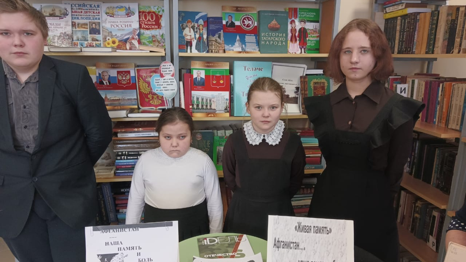 15 февраль-Әфган сугышында катнашучылар өчен үзенчәлекле көн. Совет гаскәрләрен Әфганстаннан чыгара башлау көне. Укучылар Әфган сугышы тарихы белән таныштылар, Әфган сугышының башлану сәбәпләре һәм аның дәвамлылыгы, совет гаскәрләренең югалтулары, язмыш җәбер — золым язмышын, якташларыбыз турында белделәр. Аннары укучылар авыл китапханәсендә булдылар, анда «Әфганстан, безнең хәтердә»китап күргәзмәсе белән таныштылар. Чара бер минутлык тынлык белән тәмамланды.