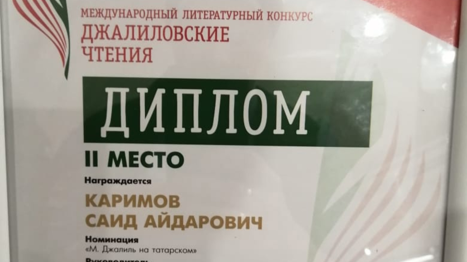 Муса Җәлилнең тууына 117 ел тулу уңаеннан, 17 февраль көнне Казан шәһәренең “Сәйдәш” мәдәни үзәгендә Бөтендөнья татар конгрессы оештырган V Халыкара “Җәлил укулары” әдәби бәйгесендә җиңүчеләрнең гала-концерты булып узды. Бәйге фронтовик язучылар тормышы һәм иҗаты белән кызыксынган шигърият сөючеләр арасында үткәрелә. Әлеге мәртәбәле бәйгедә Алан урта мәктәбе Балыклы башлангыч мәктәбе филиалы 4 сыйныф укучысы Кәримов С.А., "Җәлил татар телендә" номинациясе катнашучылары арасында 2 нче дәрәҗә дипломга лаек булды. Сәидне һәм җитәкчесе Сафиуллина А.Т. зур җиңүләре белән котлыйбыз һәм яңа иҗади уңышлар телибез!