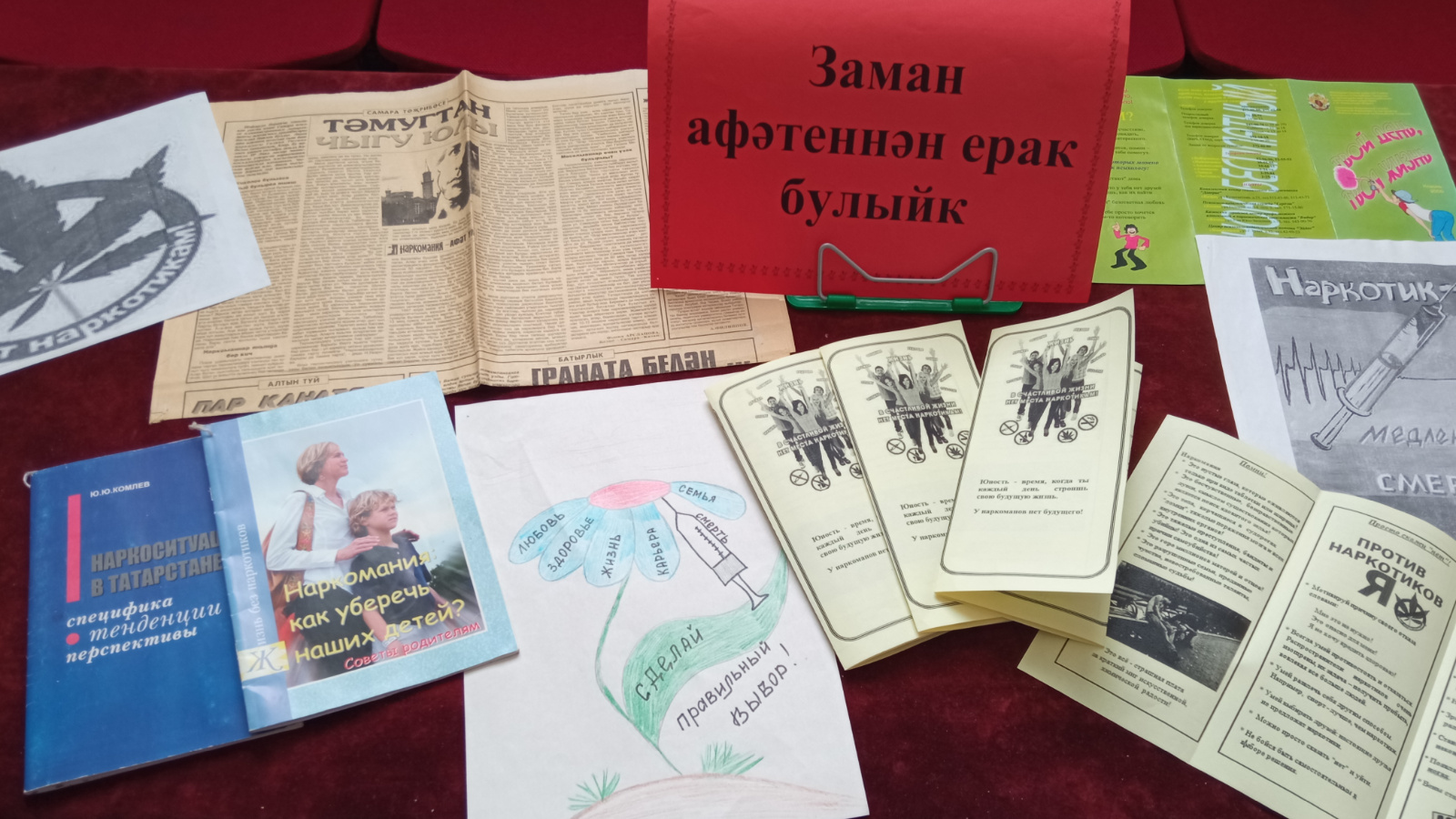 Кешелек дөньясы каршында хәзерге көннең иң куркыныч афәте – наркомания һәм аңа каршы көрәш проблемасы тора. Шул уңайдан Максабаш авылы китапханәсендә “Заман афәтеннән ерак булыйк” дип исемләнгән күргәзмә эшләнде. Күргәзмәдә наркоманияне кисәтүгә караган, сәламәт яшәү рәвеше тәрбияләү буенча киңәшләр туплаган китаплар урын алды.