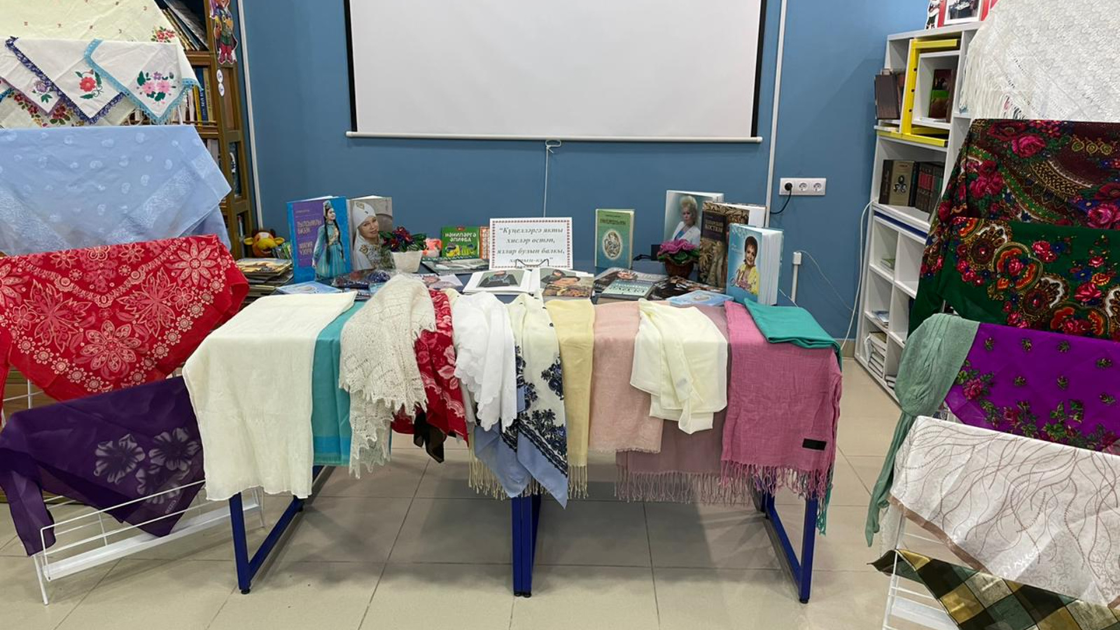 Кичә барышында яулыкларга багышланган шигырьләр укылды, әниләргә багышланган җырлар башкарылды, “Яулыклар турында ниләр беләбез” дигән викторинаның сорауларына күмәкләшеп җавап бирелде. Шулай ук кызларыбыз төрле рәвештә яулык бәйләү ысулларын күрсәттеләр. Әлеге кичәгә багышлап китапханәдә “Күңелләргә якты хисләр өстәп, язлар булып балкы, хатын-кыз” дип исемләнгән китап күргәзмәсе куелды һәм күргәзмәгә күзәтү ясалды. Бәйрәм чәй табыны артында җылы әңгәмә белән дәвам итте.