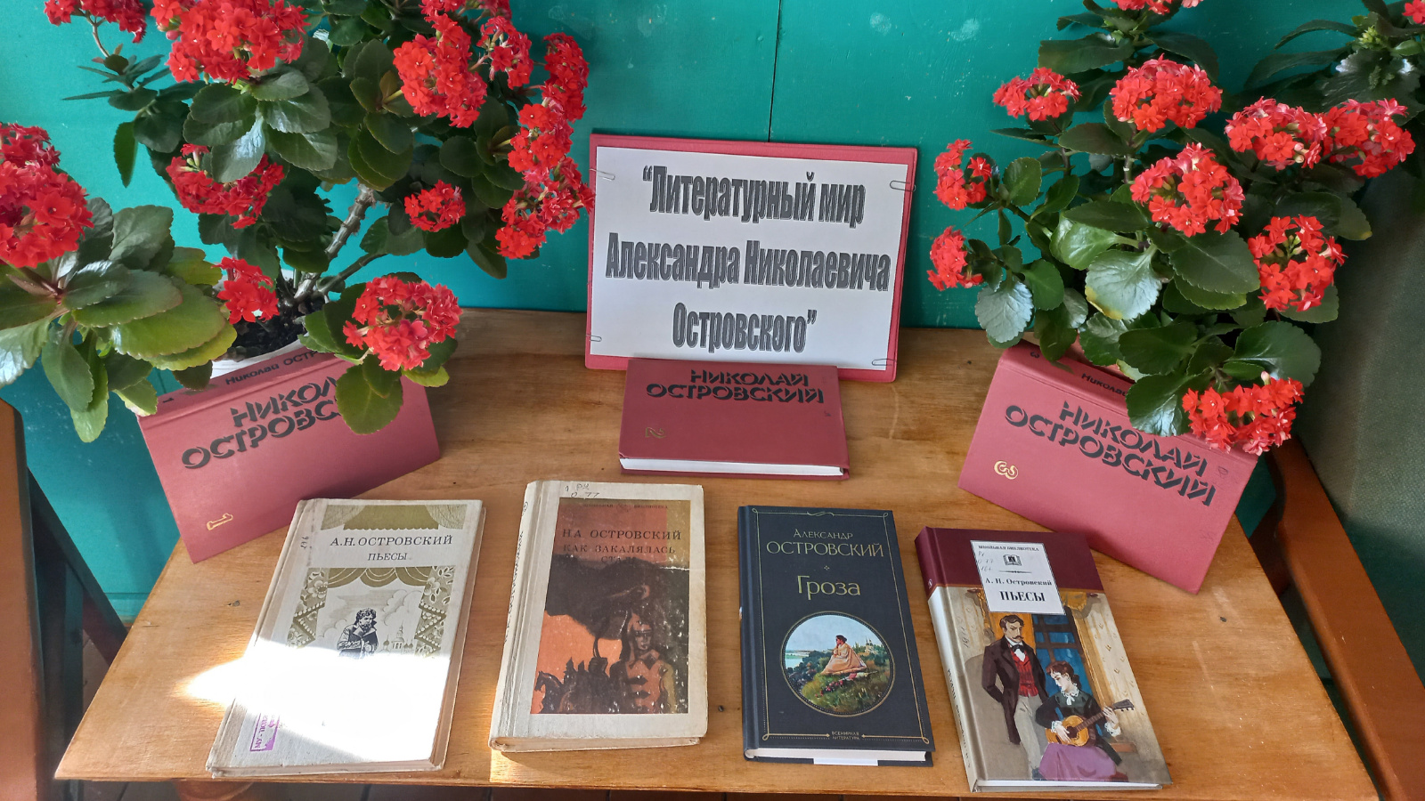 Шул уңайдан Шармыш авылы китапханәсендә “Литературный мир Александра Николаевича Островского” күргәзмәсе эшли башлады. Китапханәгә килүчеләр язучының тормышы һәм иҗаты белән таныштылар, аның тормышыннан кызыклы фактлар белделәр. Күргәзмәдә драматургның тормышы һәм иҗаты, замандашларының истәлекләре һәм, әлбәттә, әдәби китаплар тәкъдим ителә. Талантлы драматургның иҗаты Россия милли театры үсешендә иң мөһим этап булып санала.