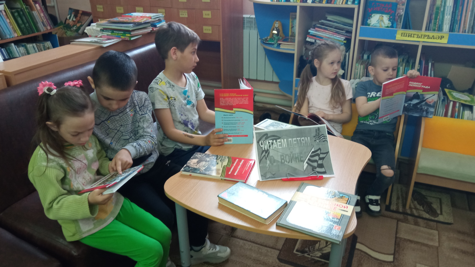 5 май көнне Теләче балалар китапханәсе ел саен үткәрелә торган “Балаларга сугыш турында укыйбыз” XIV нче Халыкара акциясенә кушылды. Акция балаларның укуына ярдәм итү өчен булдырылган зур масштаблы чара. 13 ел эчендә әлеге акциядә 6,2 миллионнан артык бала һәм яшүсмер катнашкан. Акциянең максаты - 1941-1945 еллардагы Бөек Ватан сугышы турында балалар әдәбиятының иң яхшы үрнәкләре мисалында балаларда һәм яшүсмерләрдә гражданлык һәм патриотизмны иң мөһим рухи-әхлакый һәм социаль кыйммәтләр буларак формалаштыру өчен шартлар тудыру. Акция нигезендә 5 яшьтән 15 яшькә кадәрге балаларга сугышның якты эпизодлары турында әсәрләр уку ята. “Шаркылдыклар” клубы әгъзаларына Е. Ильинаның «Дүртенче биеклек», Р. Мәннанның «Ватаным өчен!», «Бөек Ватан сугышы» китапларыннан шигырьләр һәм өзекләр кычкырып укылды.