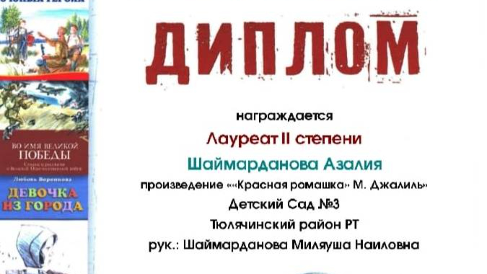 Теләче 3нче номерлы балалар бакчасы мәктәпкә әзерлек төркеме тәрбияләнүчесе Шәймәрданова А.А. «Әдәби фикерләр дөньясында» республика күләм нәфис уку бәйгесендә катнашты һәм 2 дәрәҗә лаурет булды. Котлыйбыз!!!