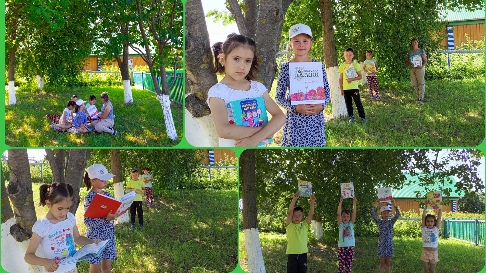 Һәрбер бала, китапханәдә ошаган китапны үзләре белән алып, табигать кочагында кычкырып уку оештырдылар, «Җәй, китап, мин – дуслар!» әдәби уенында актив катнаштылар. Әдәби викторина сорауларына җавап бирделәр, китаплар, әдәби геройлар турындагы мәкальләрне искә төшерделәр. Чарада катнашучыларның барысы да татлы призлар белән бүләкләнде.