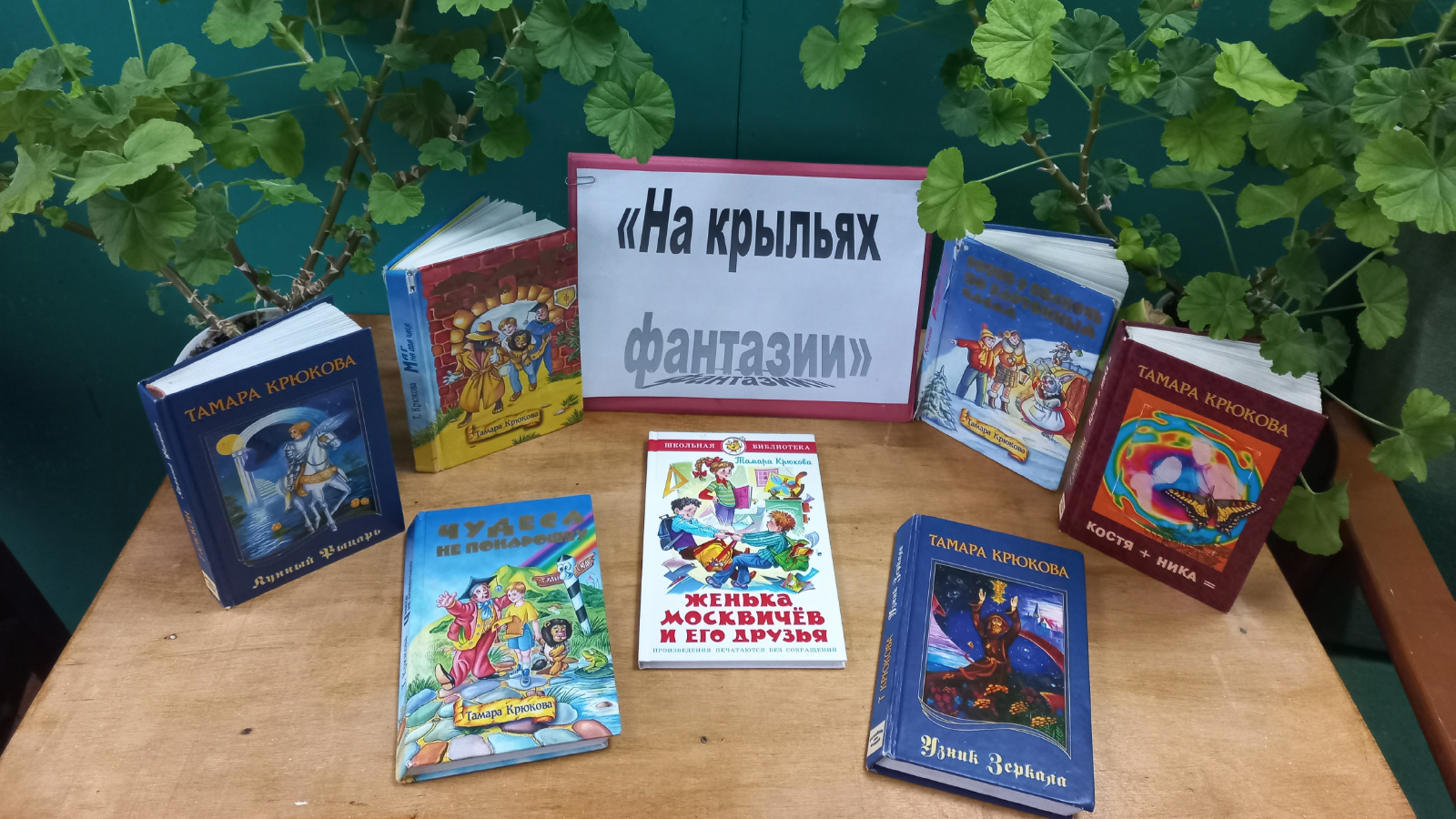 Шармыш авыл китапханәсе укучыларны балалар һәм яшьләр китап авторы Тамара Крюковага багышланган "Фантазия канатларында" дип исемләнгән китап күргәзмәсе белән танышырга чакыра. Тамара Шамильевна балалар өчен көлке һәм гыйбрәтле хикәяләр, әкиятләр, шулай ук беренче мәхәббәт, детектив һәм фантастик хикәяләр яза. Билгеле яшькә кадәр балаларга әдәбият дөньясында юл күрсәтүче кирәк һәм олыларның бурычы - баланы китап сайларга өйрәтү. Әлбәттә, баланың фикерен тыңлап, бергә киңәшләшеп китапны сайлау мөһим. Әгәр дә ата-ана бала сайлаган фантастиканы яратмый икән, һәм балалары бары классиканы гына укырга тиеш дип уйлый икән, анннан китап укучы үстереп булмаячак. Тамара Крюкованың китаплары гыйбрәтле һәм балага кыю, намуслы һәм затлы кеше булырга ярдәм итәчәк.