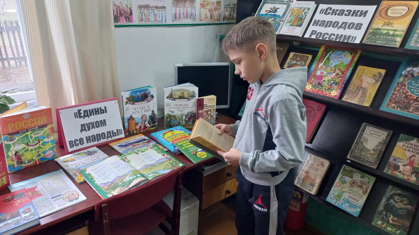Күргәзмәдә тәкъдим ителгән әдәбият илебез турында күп кенә яңа һәм кызыклы мәгълүмат белергә ярдәм итә. Биредә илебез тарихы турында сөйләүче энциклопедияләр дә тәкъдим ителде. Шулай ук әлеге көнгә «Сказки народов России» исемле күргәзмә эшләнде. Халыклар бердәмлеге көне алдыннан, «Дарю тепло» акциясенә кушылып, китап күргәзмәләре янында бәйрәмнең тарихи вакыйгалары, суверенитет һәм дәүләтчелек юлында халкыбыз кичергән сынаулар, җирдәге тынычлык кыйммәтләре турындагы темаларга багышлап әңгәмәләр үткәрелде.
