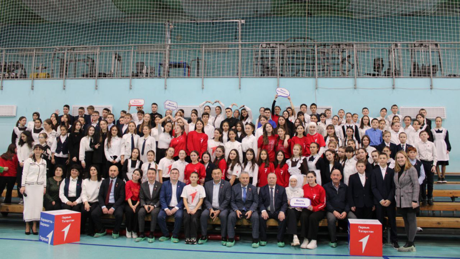Бүген район башлыгы Нәҗип Хаҗипов, Россия Федерациясе Федераль җыены Дәүләт Думасы депутатлары Рөстәм Калимуллин, Марат Нуриев, Татарстан республикасында яшьләр хәрәкәте җитәкчесе урынбасары Алла Кондратьева укучылар белән аралашты. Бу көнне җитәкчеләр егет, кызларга алдынгылар хәрәкәте билгесе ( значок) һәм бердәмлек символы беләзек тапшырды.