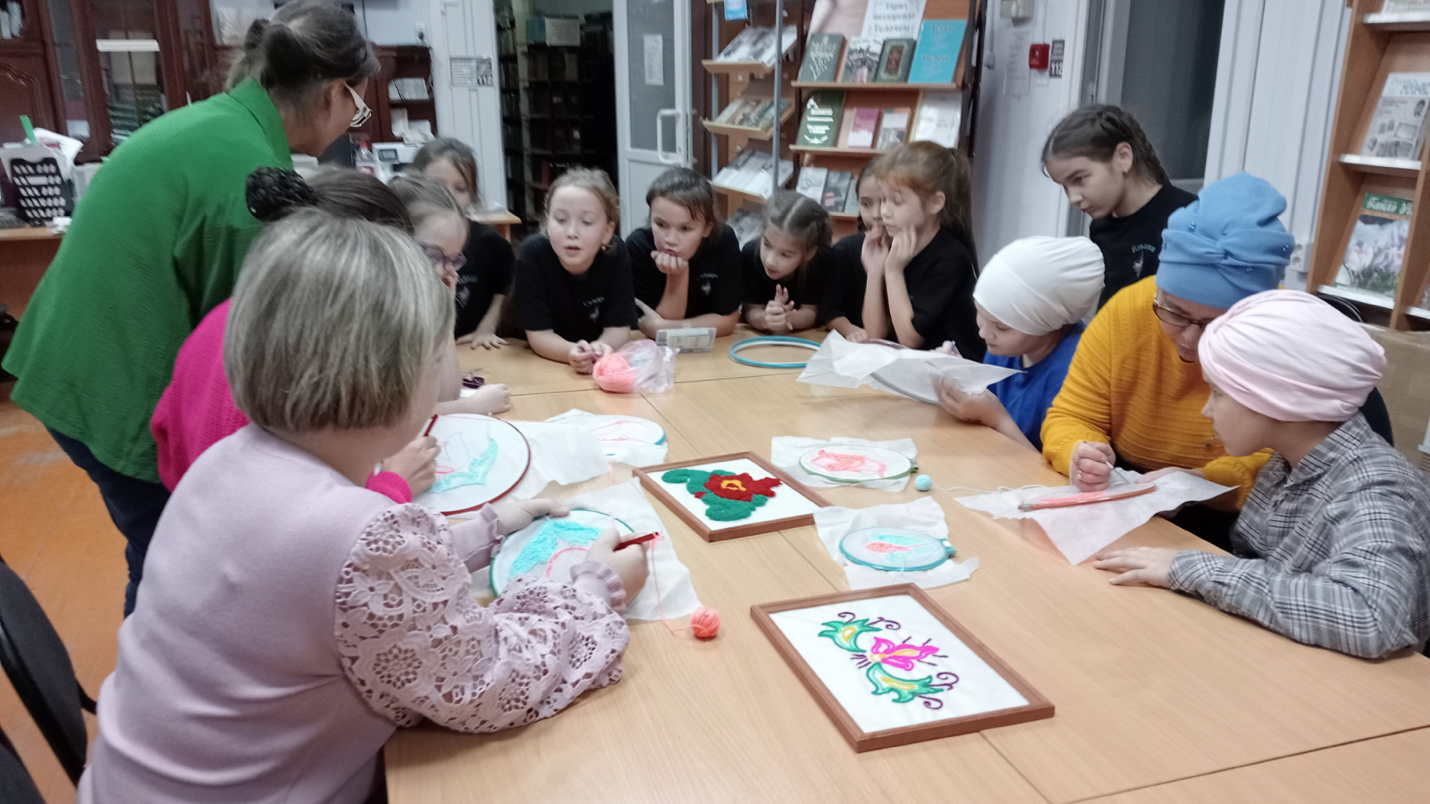 Теләче үзәк китапхансе хезмәткәрләре мәктәп укучылары өчен «Пушкин картасы» Бөтенроссия программасы кысаларында “Келәмле чигү” буенча мастер-класс үткәрделәр. Бүгенге көндә “Келәмле чигү” үрнәге чигү техникасында бик популяр санала. Укучылар милли бизәкләрне кулланып панно чиктеләр, иҗат процессы аларга бик ошады.