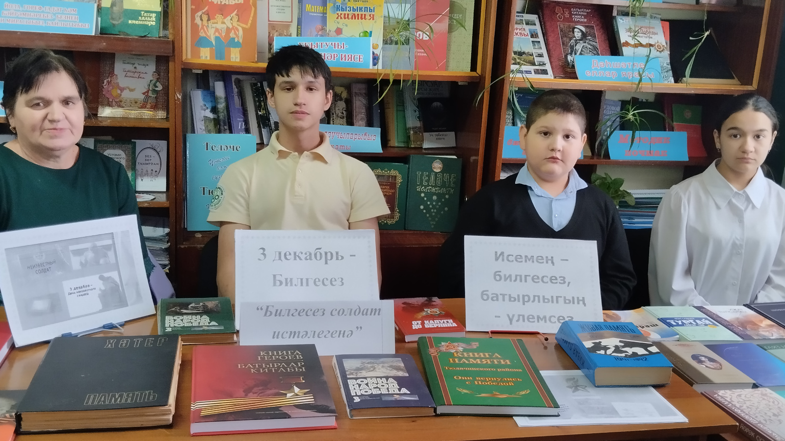 Әлеге датага карата 2 декабрь көнне Урта Мишә авыл китапханәсендә клуб белән берлектә “Билгесез солдат истәлегенә” исемле хәтер сәгате үткәрелде. Илебез тарихында иң дәһшәтле саналган Бөек Ватан сугышында миллионлаган кешенең гомере өзелде. Билгесез солдат көне – ул Бөек Ватан сугышында һәлак булганнарны искә алу һәм хөрмәтләү генә түгел, ул сугышларда яки хәрби конфликтларда һәлак булганнарны, хәбәрсез югалганнарны барысын да берләштерү көне дә. Ул Ватанны саклаган һәм фронтларда һәлак булган һәр солдатны хәтерләү һәм мәрхәмәтлелек күрсәтү көне дә.
