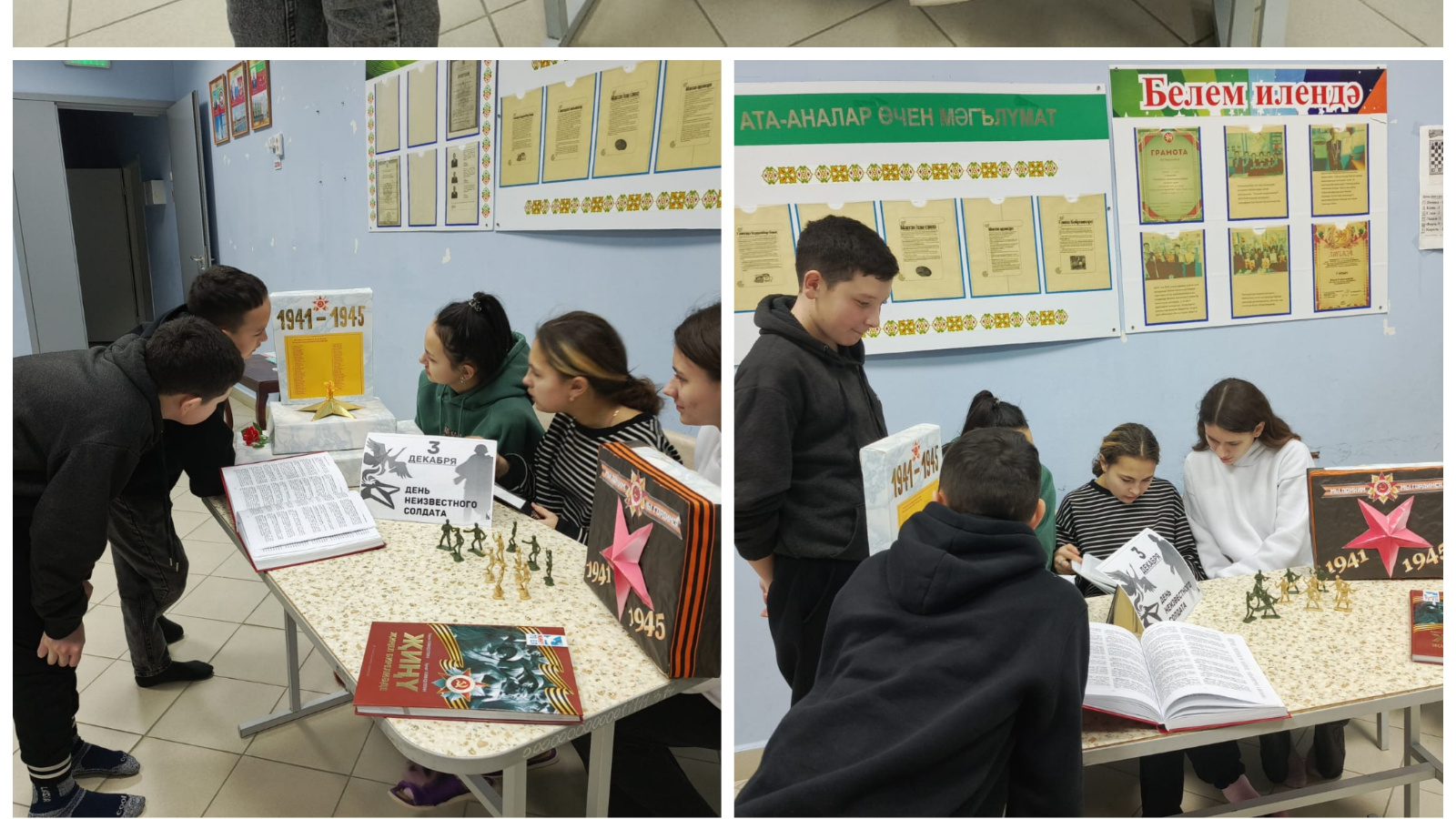 Чарада балалар әлеге истәлекле датаның барлыкка килү тарихы белән таныштылар, ни өчен нәкъ менә 3 декабрьнең Хәрби батырлык истәлеген саклау өчен сайлануын белделәр, укучыларга «Билгесез солдат кабере» мемориалы турында сөйләделәр. Балалар Бөек сугышлар турындагы китаплар, илебезнең төрле шәһәрләрендә урнашкан Билгесез солдат һәйкәлләренең иллюстрацияләре белән таныштылар. Шулай ук Теләче районында туып-үскән, Бөек Ватан сугышында һәлак булган һәм хәбәрсез югалган авылдашларнын исемлеге белән таныштылар.