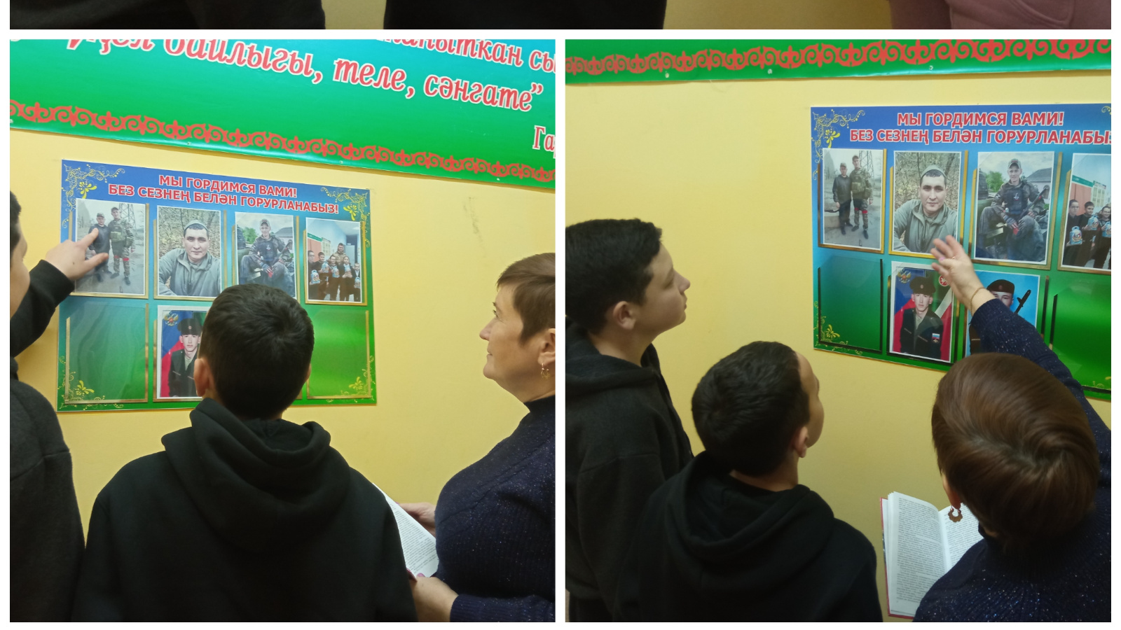Ватан турындагы мәкальләрне искә төшерделәр. Балаларга Украинадагы махсус хәрби операция турында, безнең якташларыбыз – СВО да катнашучылар, хәзерге вакытта аларнын күрсәткән батырлыклары турында сөйләнде. Авылыбыз Геройларын алар олы хөрмәт белән искә алдылар.
