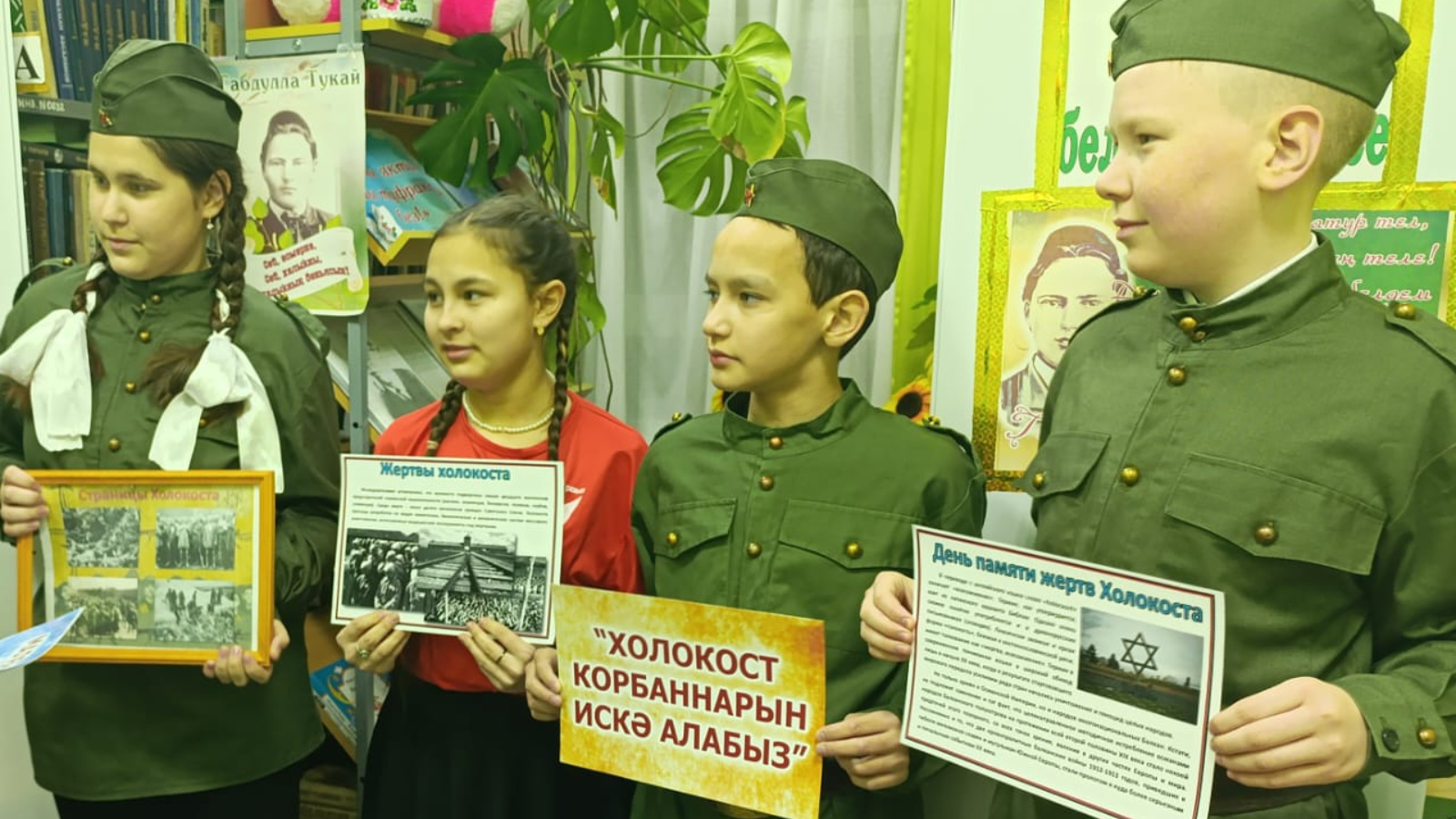 Бу истәлекле дата уңаеннан китапханәдә «Бу хакта һәркем белергә тиеш» дип исемләнгән әңгәмә үткәрелде. Китапханәче «холокост» сүзенең әһәмияте турында сөйләде һәм катнашучыларны Саласпилс, Бухенвальд, Майданек, Бабий Яр, Хатыньнар белән таныштырды. Укучылар, фашистларның гамәлләрен гаепләп, әлеге куркыныч фаҗигагә карата үз карашларын белдерделәр. Чара ахырында катнашучылар һәлак булучыларны бер минут тынлык белән искә алдылар.