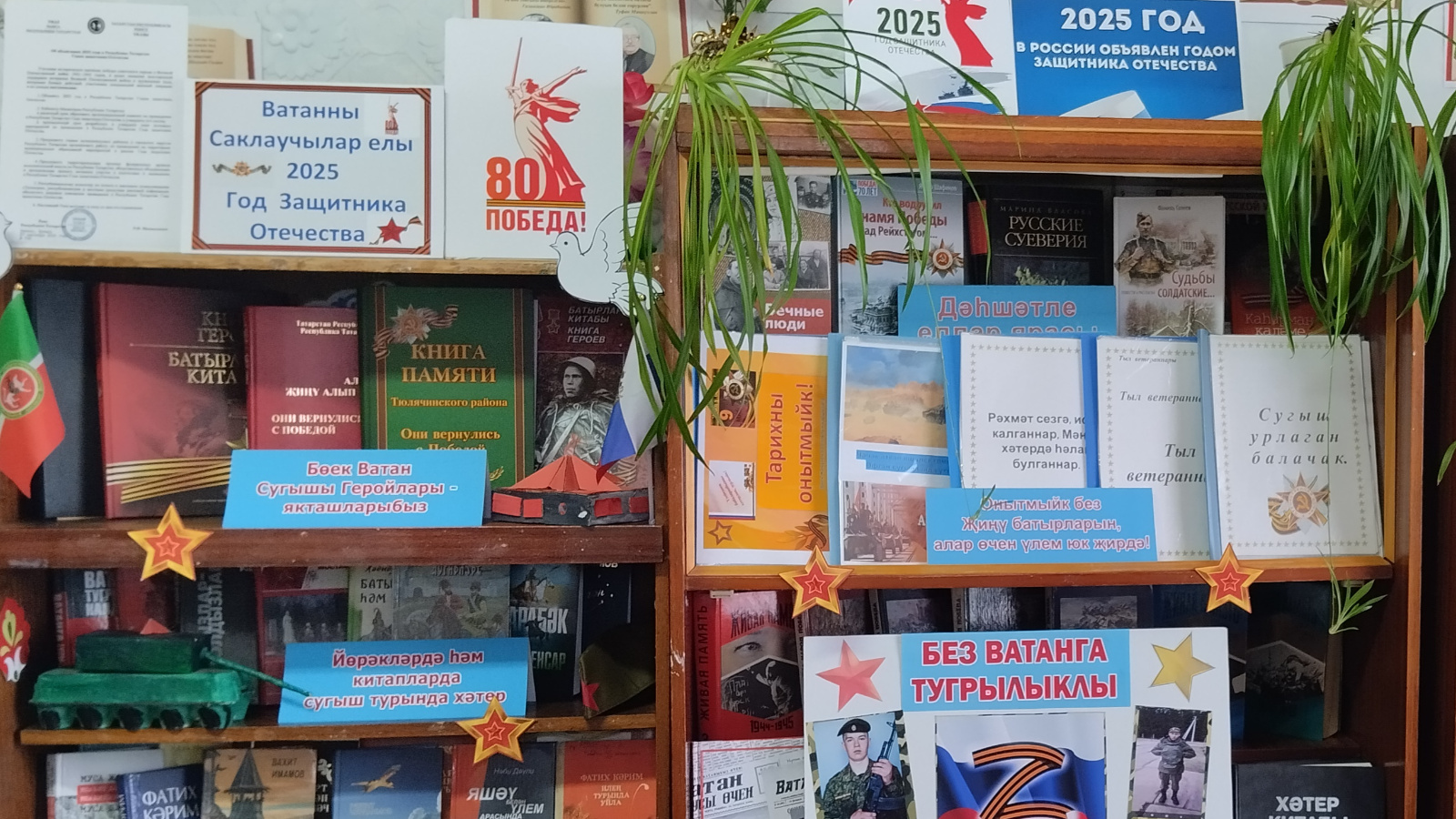 Быел без Бөек Җиңүнең 80 еллыгын билгеләп үтәчәкбез. Шул уңайдан 29 гыйнвар көнне Урта Мишә авыл китапханәсендә “2025 ел – Ватанны саклаучылар елы” дип исемләнгән тематик күргәзмә ясалды. Күргәзмәгә геройлар, махсус хәрби операциядә катнашучылар хөрмәтенә, Ватаныбыз өчен төрле тарихи чорларда сугышкан ата-бабаларыбызның батырлыклары истәлегенә багышланган китаплар, фото альбомнарга урын бирелде. Китап укучылар әлеге күргәзмә белән ел дәвамында таныша алачак.