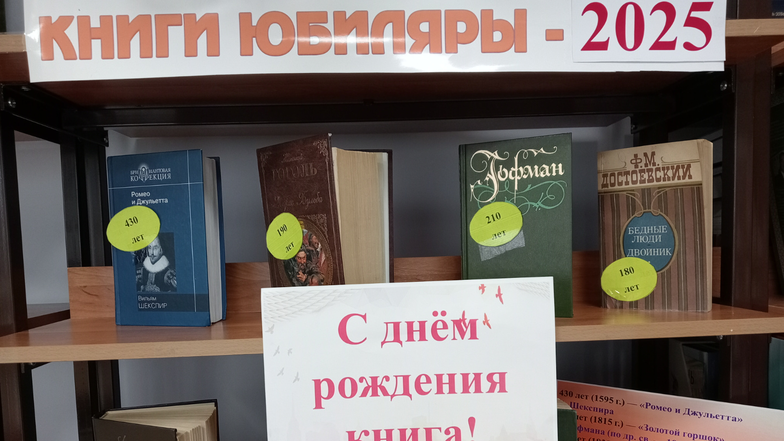Күргәзмәдә чит ил авторларының: Г.Маркесның «100 лет одиночества», Т. Драйзер «Американская трагедия», Фицджеральд Ф. С. «Великий Гэтсби», Верн Ж. «Тайнственный остров», рус һәм совет язучылары һәм шагыйрьләре: А. Б. Чаковскийның «Блокада», М. Булгаковның «Собачье сердце», Гладков Ф.В “Цемент”, М. Горькийның “Дело Артамоновых”, С.Есенин “Анна Снегин”, Шолохов М.А. “Нахаленок”, А.Толстой “Царь Борис”, А. С. Пушкинның “Борис Годунов” әсәрләре урын алган. Күргәзмәдә тәкъдим ителгән китапларның һәркайсы аерым игътибарга лаек, мәдәният һәм әдәбият өчен чын мәгънәсендә кыйммәтле. Әлеге китапларны яңадан беркат уку, әдәби геройларны искә төшерү өчен китапханәдә көтеп калабыз.