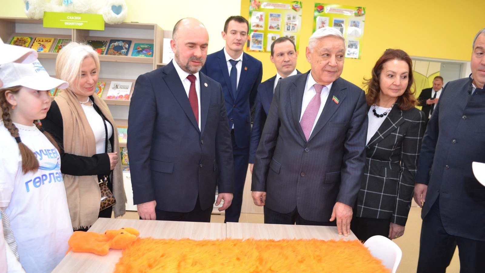 Балалар китапханәсендә аны "Гөрләвек" курчак театры клубына йөрүче балалар каршы алды.