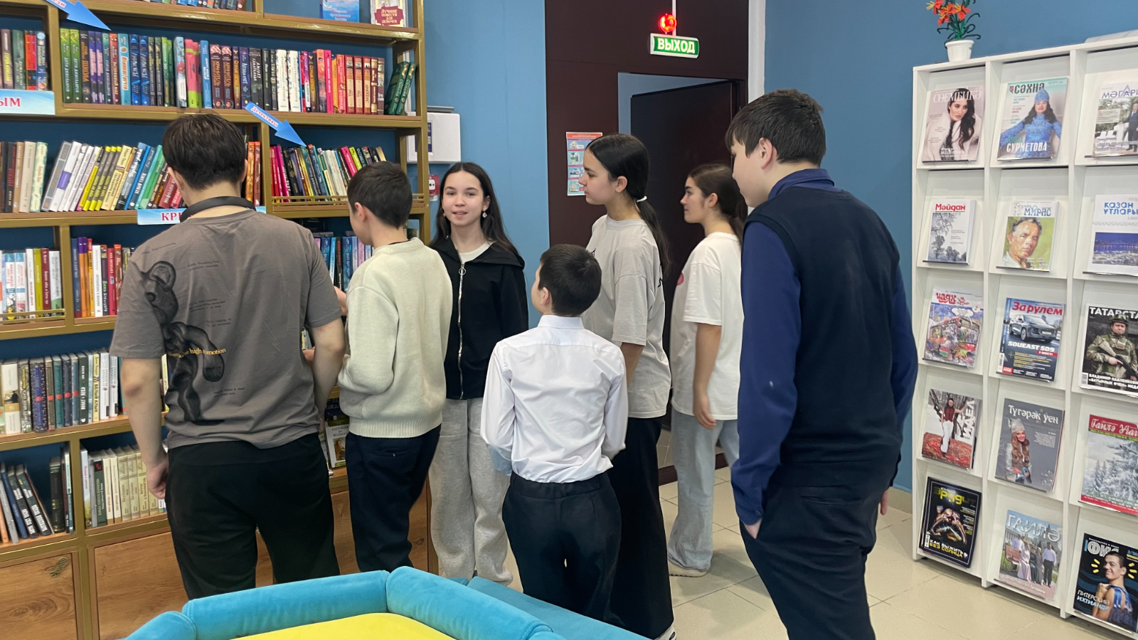 Китапханәчеләр кунакларны яңа китаплар белән таныштырдылар, яңа мәгълүмати ресурслар турында сөйләделәр. Алар китапханәнең заллары, китап фонды, вакытлы мәгълүмат белән таныштылар. Китапханәдә укучылар өчен докладлар, проектлар, хәбәрләр, презентацияләр язу өчен кулланыла торган компьютерлар бар. Шулай ук биредә мәктәптә бирелгән өй эшләрен дә башкарырга мөмкин, укучылар китапханәдә китаплар уку белән беррәттән, төрле кызыклы интеллектуаль уеннар уйнадылар.