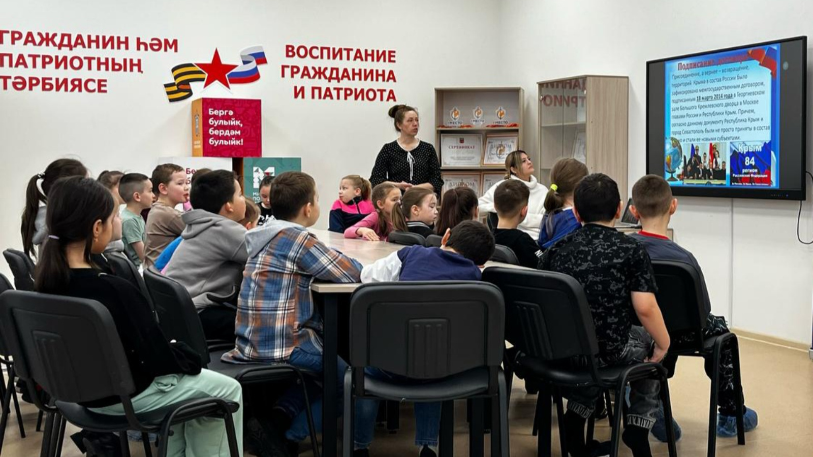15 март көнне район балалар китапханәсендә, Теләче урта мәктәбенең 2 сыйныф укучылары өчен Кырым Республикасы һәм Севастополь шәһәренең Россия белән берләшү көненә багышланган мәгълүмат сәгате үткәрелде. Әлеге чара презентация, лекция һәм фикер алышу буларак үрелеп барды. Алынган белемнәрне ныгыту һәм материалны ныклап үзләштерү максатыннан мәгълүмат сәгатеннән соң «Таврида табышмаклары» викторинасы оештырылды. Шушы чарага өстәмә буларак «Минем Кырым – минем Россиям» дип исемләнгән китап күргәзмәсе куелды.
