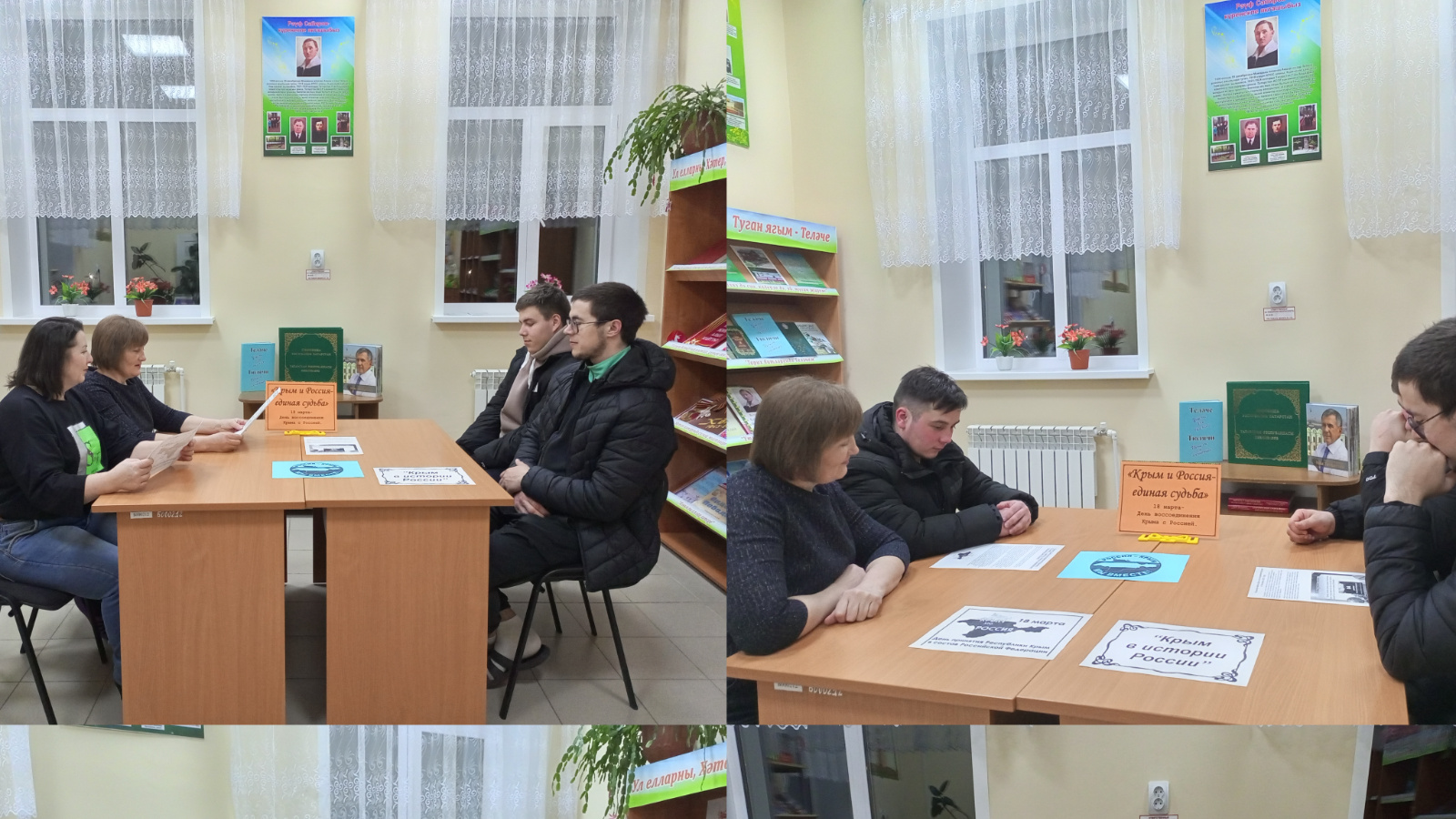 Нәкъ 11 ел элек Кырымда референдум узды, аның нәтиҗәләре буенча ярымутрау Россия Федерациясе составына керде. Бу истәлекле көн уңаеннан Айдар авылы китапханәсендә «Кырым һәм Россия бердәм язмыш» исемле тематик әңгәмә уздырылды. Чарада катнашучыларга китапханәче Кырым тарихы, 2014 елның мартында булган вакыйгалар, ярымутрауның истәлекле урыннары һәм табигате, хәзерге вакытта Кырымда яшәүче халыклар, аларның мәдәни мирасы турында мәгълүмат җиткерде. Шулай ук иҗатында шушы якны яктырткан классиклар турында да сөйләнде. Ул биредә рус язучыларының һәм шагыйрьләренең мәшһүр әсәрләре язылуын билгеләп үтте.