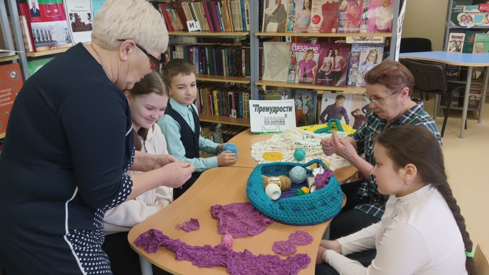Китапханәче балаларга бәйләү кармакларының төрләре, схемаларны ничек укырга кирәклеге турында аңлатты һәм осталык серләре белән уртаклашты. Кайберәүләрне квадрат бәйләү техникасы кызыксындырды, икенчеләре тастымал бәйләп карадылар, бәйләүнең иң гади элементларына өйрәнделәр, шулай ук бәйләү буенча журналларга күзәтү үткәрделәр. Эш белән вакыт сизелмичә үтеп китте, катнашучылар үзләренә кечкенә матур тастымаллар бәйләделәр. Саубуллашып, барысы да яңа очрашулар өмет итеп калдылар.