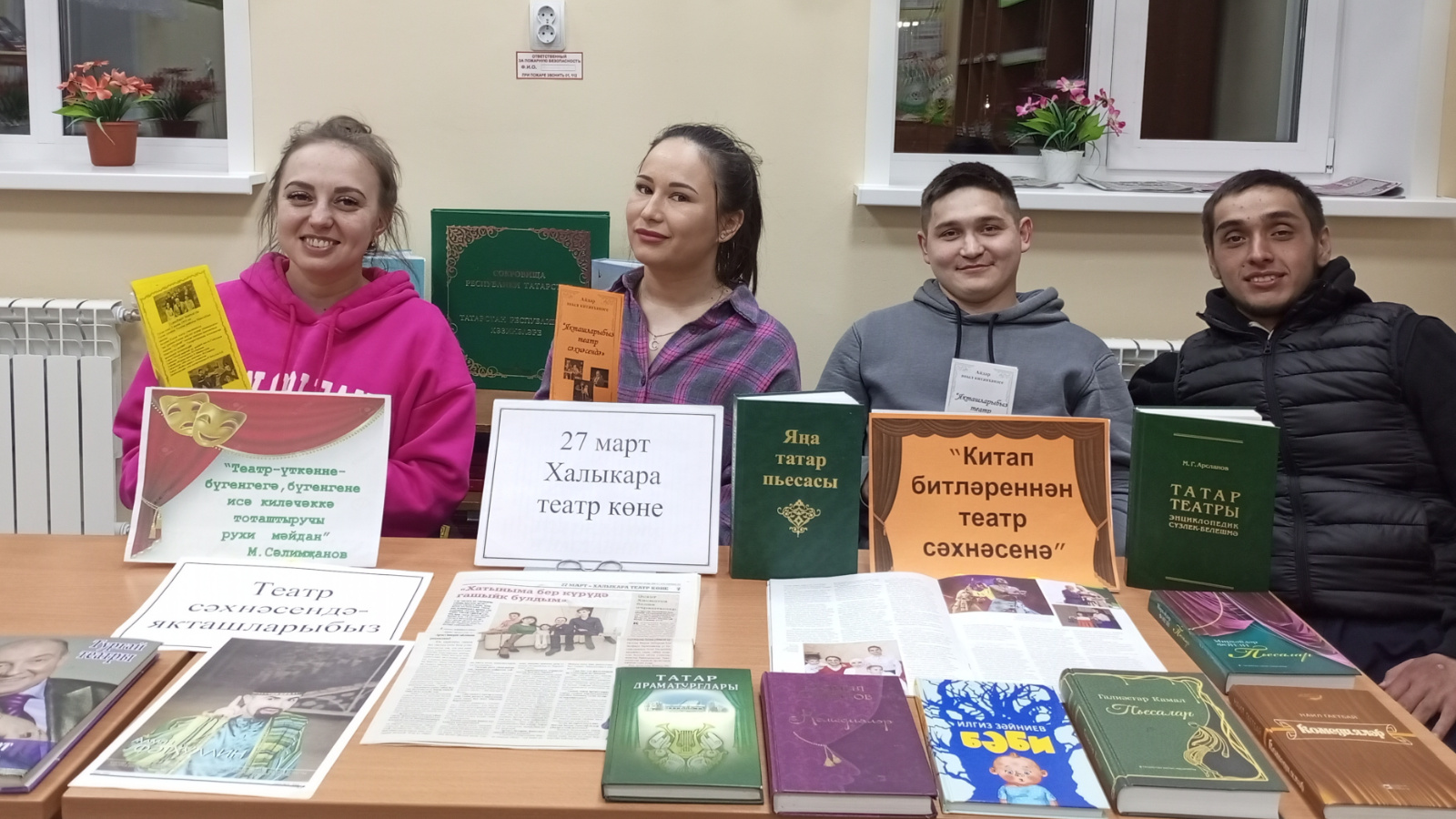Халыкара театр көне - сәхнә осталарының профессиональ бәйрәме генә түгел, ул миллионлаган тамашачыларның да бәйрәме. Театр – милләт язмышының һич тутыкмас көзгесе ул. Бик күп еллар дәвамында татар милләтенең рухын, телен, әхлагын саклап һәм үстереп, безне бербөтен халык итеп тотучы татар театры һичшиксез, олы ихтирамга, чиксез мәхәббәткә лаек. Әлеге көн уңаеннан, Айдар авылы китапханәсендә 27-28 март көннәрендә «Якташларыбыз театр сәхнәсендә» дип исемләнгән күргәзмә куелды һәм аралашу сәгате үткәрелде. Яшьләргә бәйрәмнең үткәрелү тарихы сөйләнде. Алар Илнар Низамиев, Харис Хөснетдинов, Алмаз Фәтхуллин, Роберт Галиев кебек танылган артистларыбызның тормышы һәм иҗаты турында белделәр. Әлеге очрашуның максаты: районыбызның танылган якташлары белән таныштыру, аларның эшчәнлекләре һәм ватан алдындагы казанышлары турында белемнәрне киңәйтү, туган якка мәхәббәт тәрбияләү.
